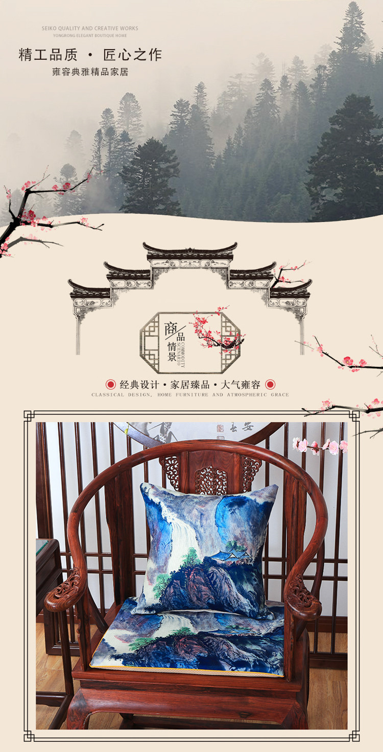商品名称:北辰 2020新款麻布印花新中式抱枕 飞流直下