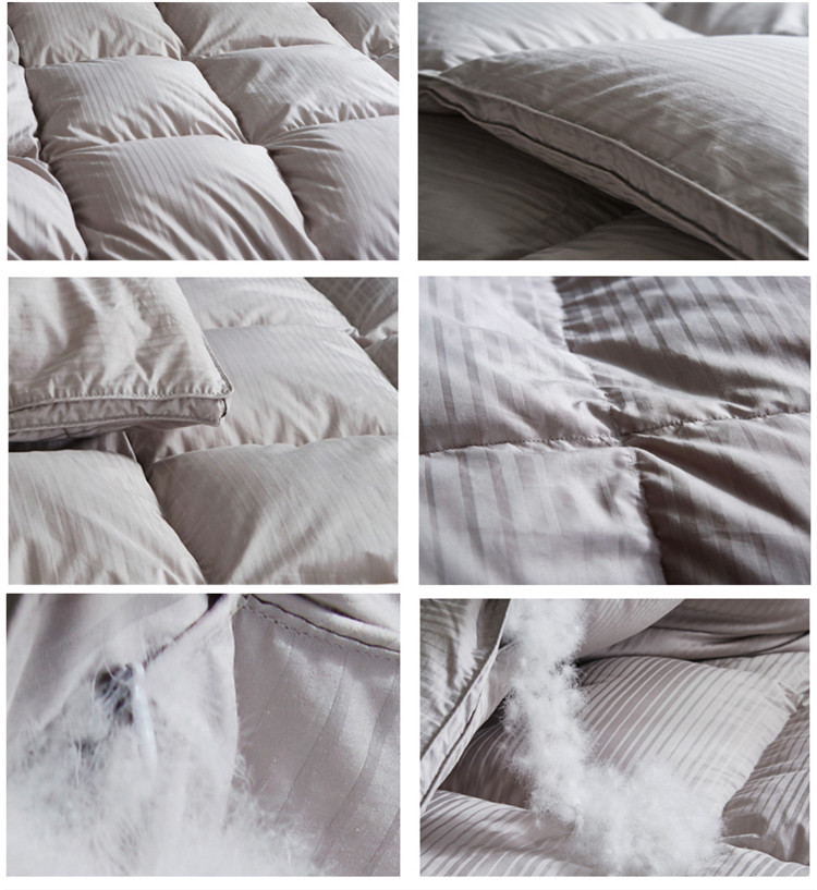 商品名称:俏企鹅 2025新款100支全棉缎条羽绒被 灰色
