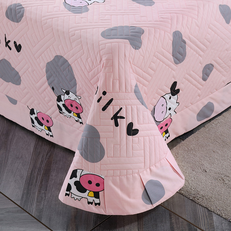 OL 2021新款13372全棉夹棉活性印染单品床盖 网红小妞-粉