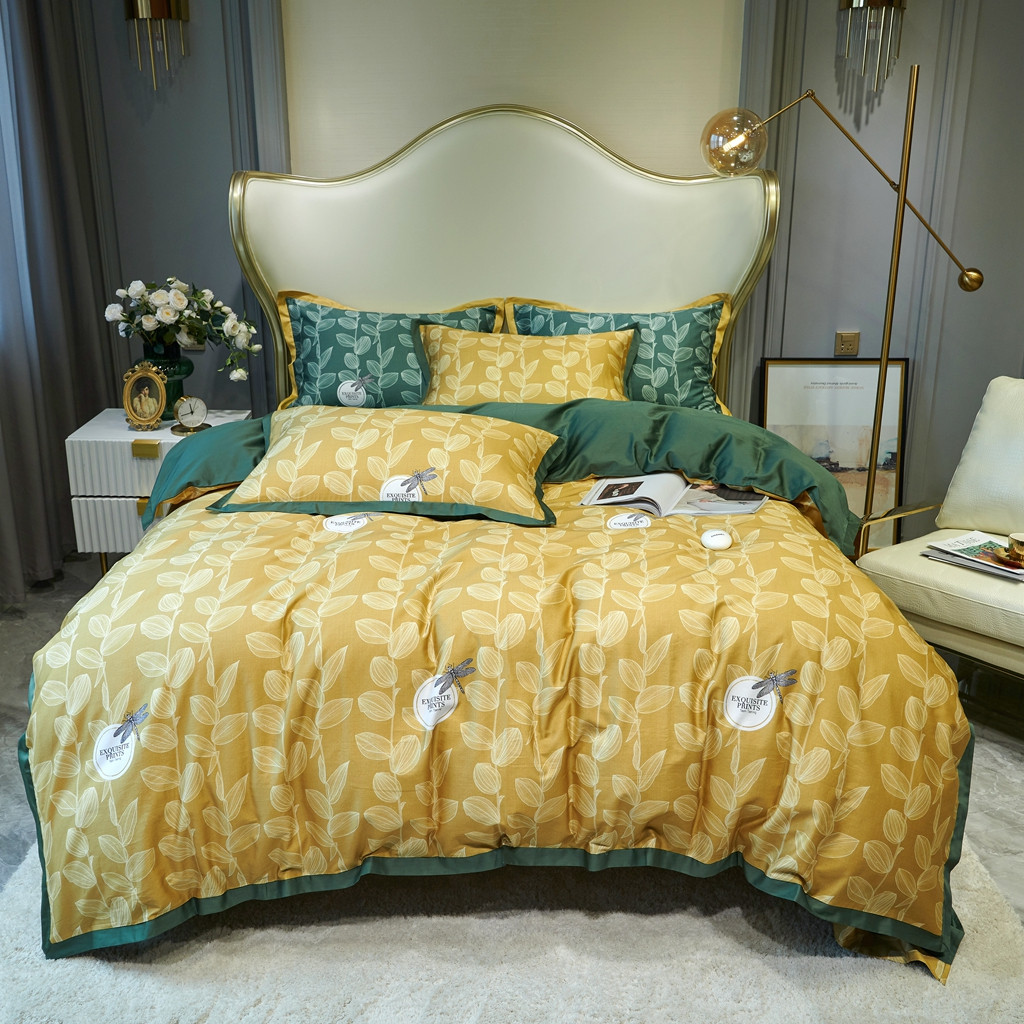 (总)优然居2020新款100支婴儿暖绒棉轻奢风刺绣四件套,大地黄加藏青,复古咖青,轻奢粉灰,霜绿大地色,霜绿复古色