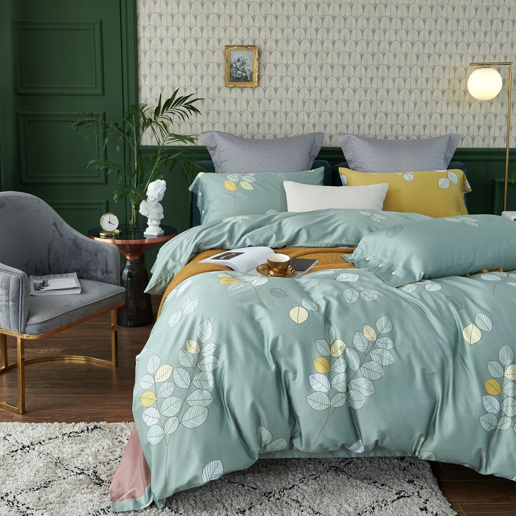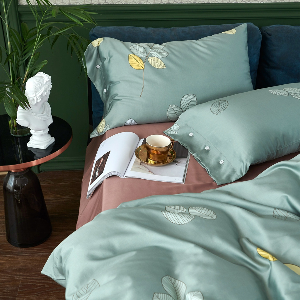 优然居2020新款60S长绒棉活性印花四件套 浅陌绿