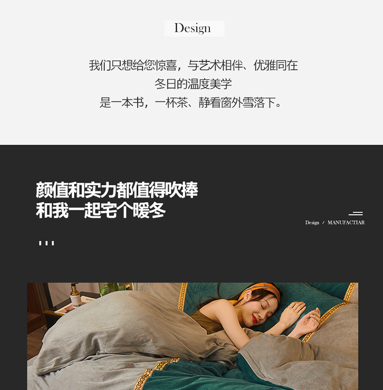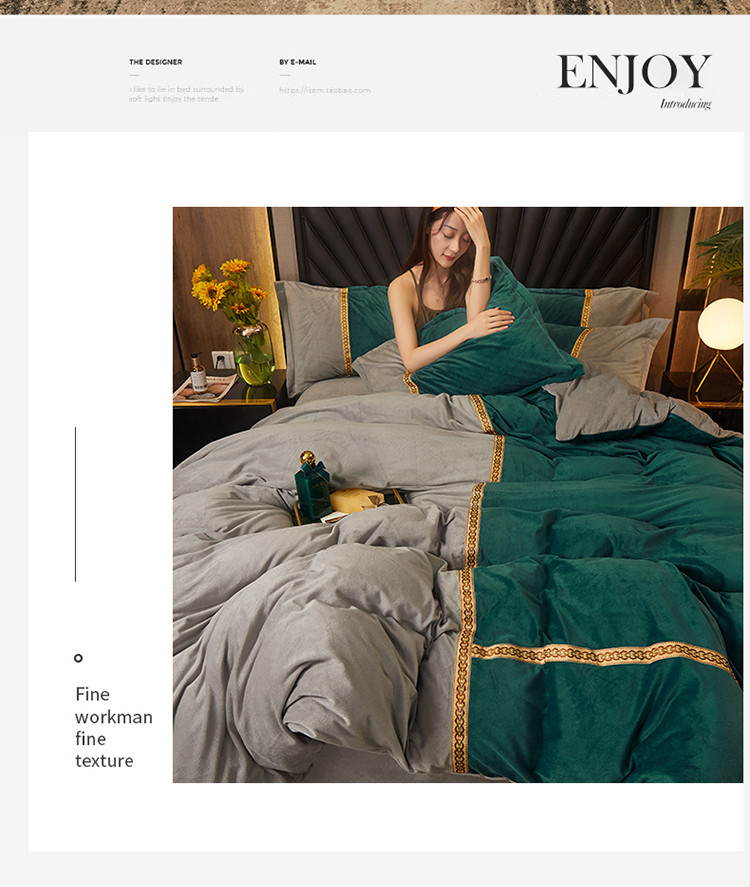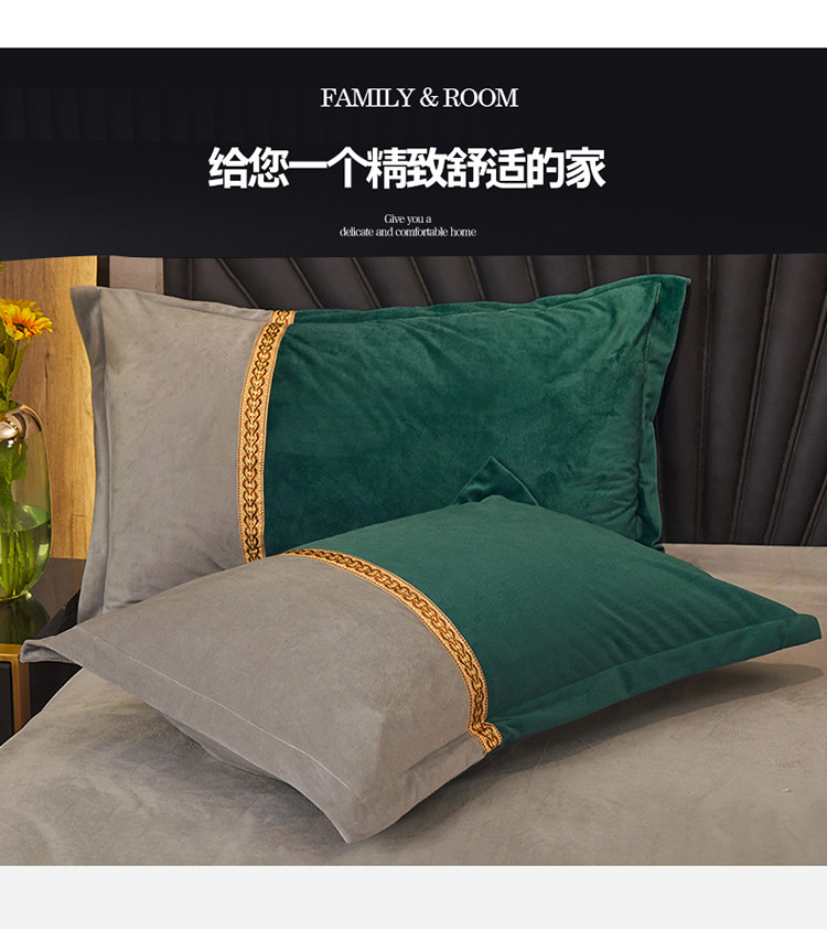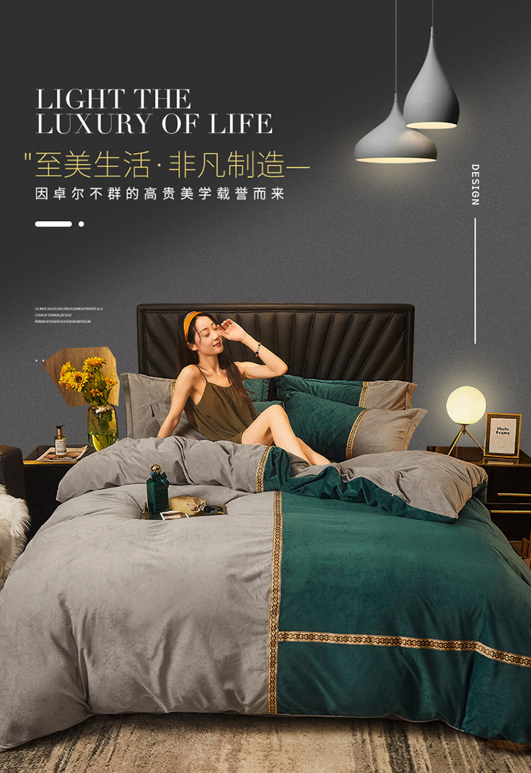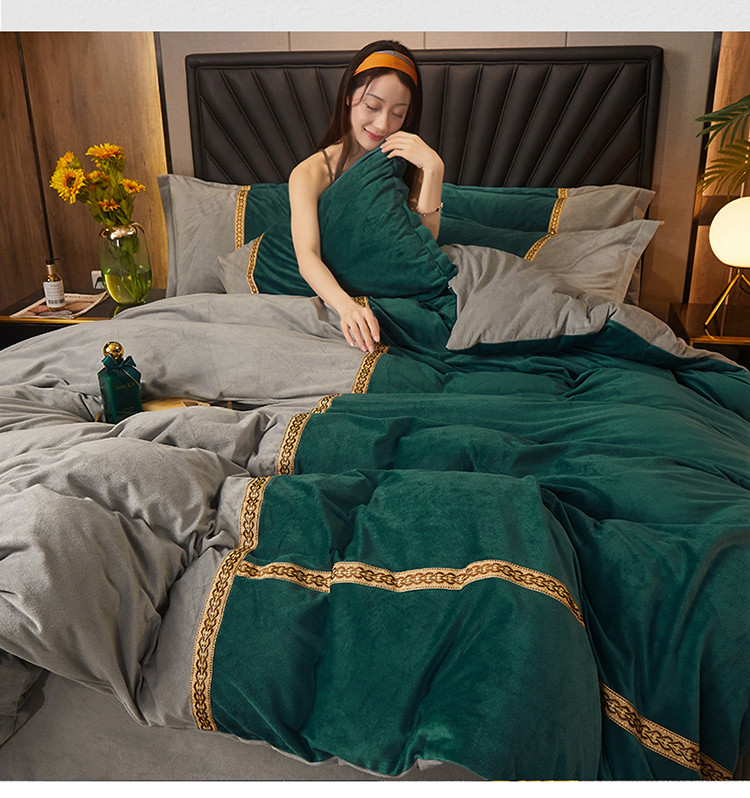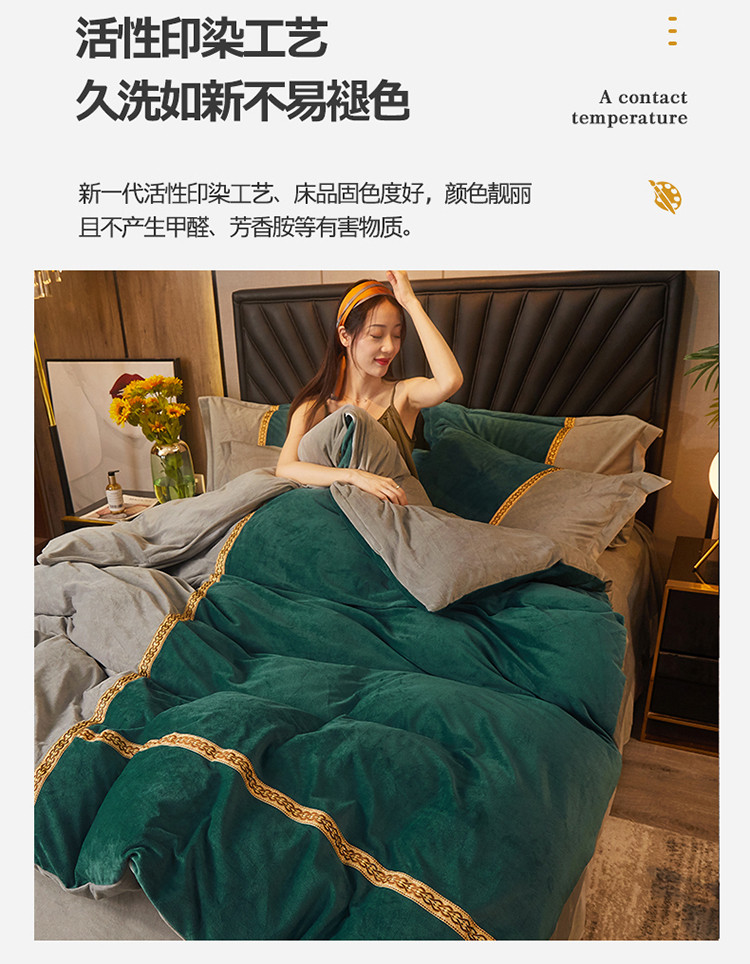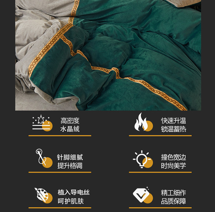 商品名称:铠畅 2020新款织带款水晶绒四件套 唯爱-墨绿灰