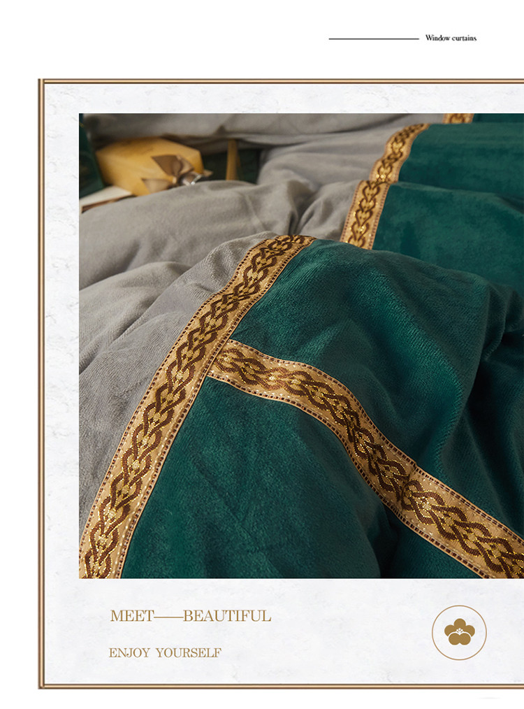 铠畅 2020新款织带款水晶绒四件套 唯爱-墨绿灰
