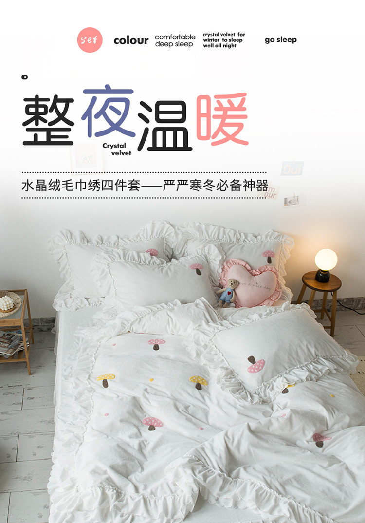 淑女公社 2020新款秋冬毛巾绣13色四件套 小蘑菇白色