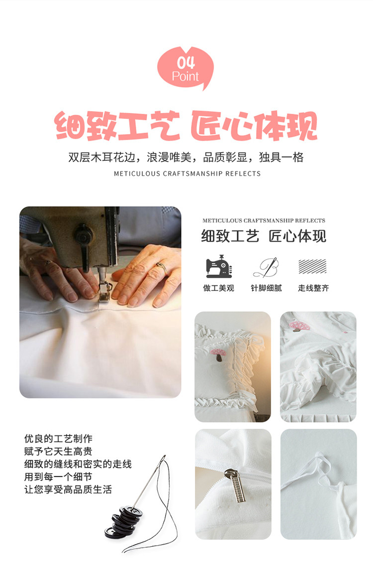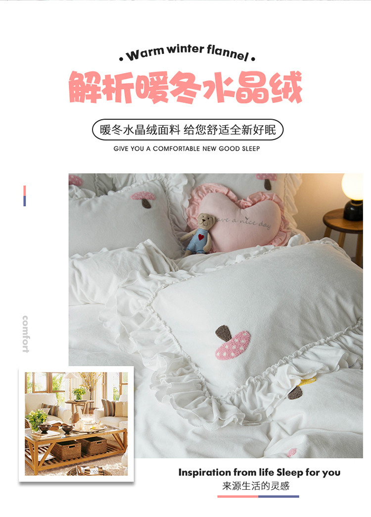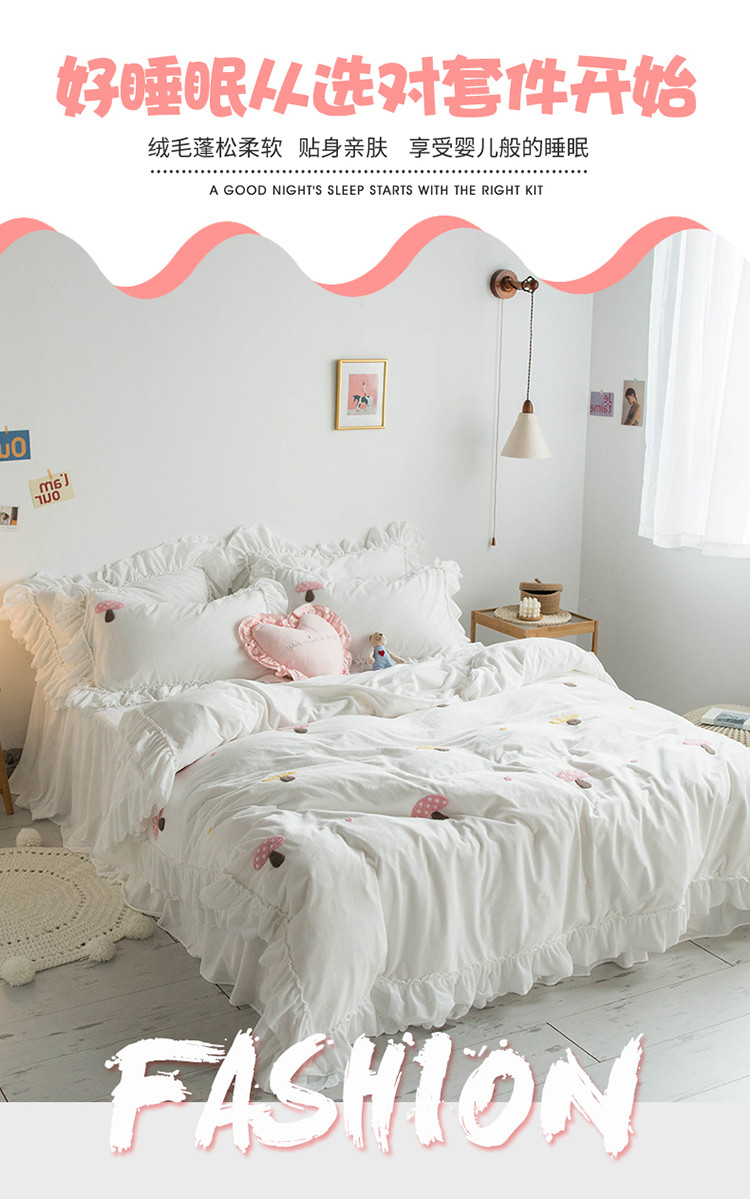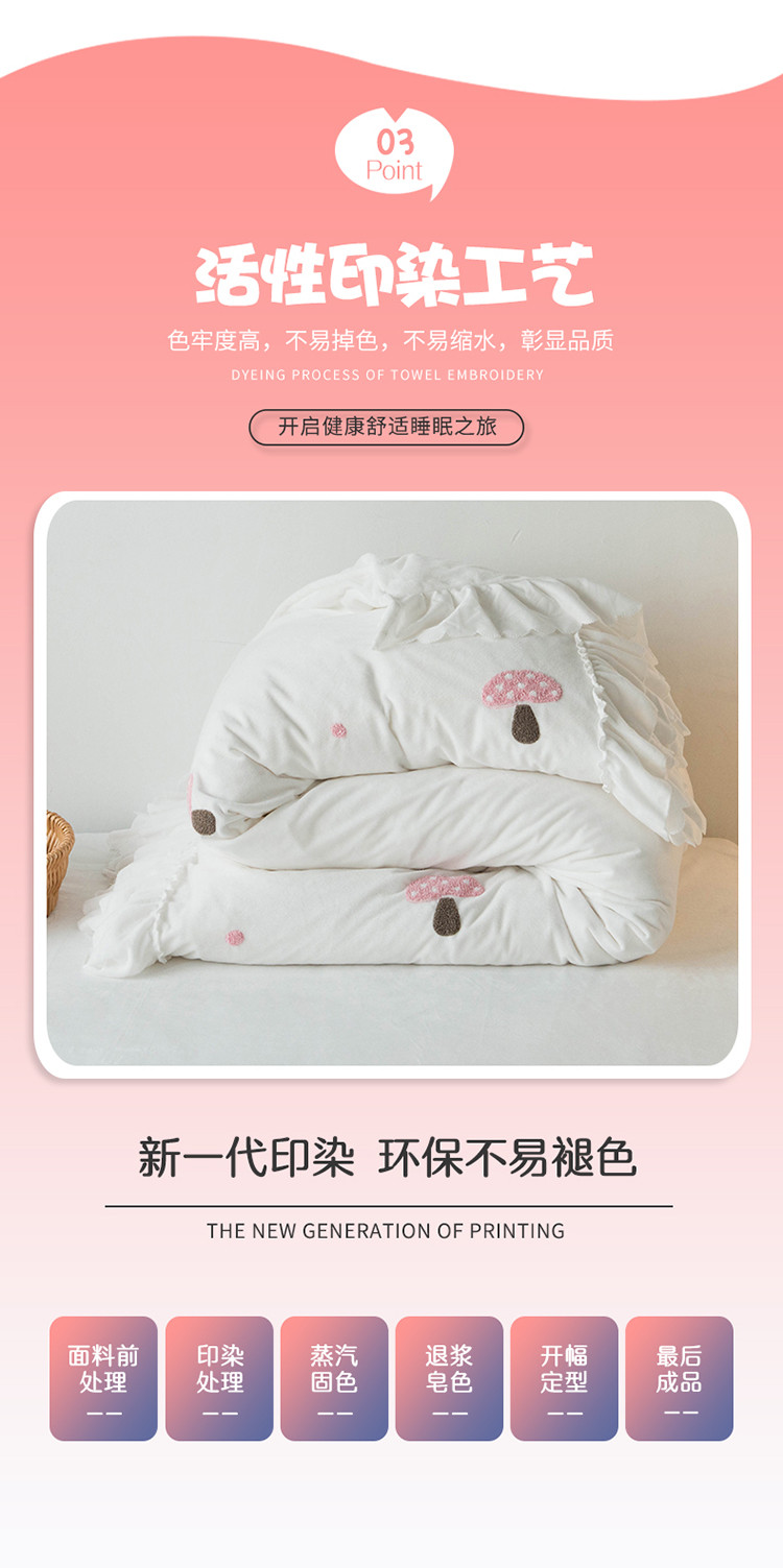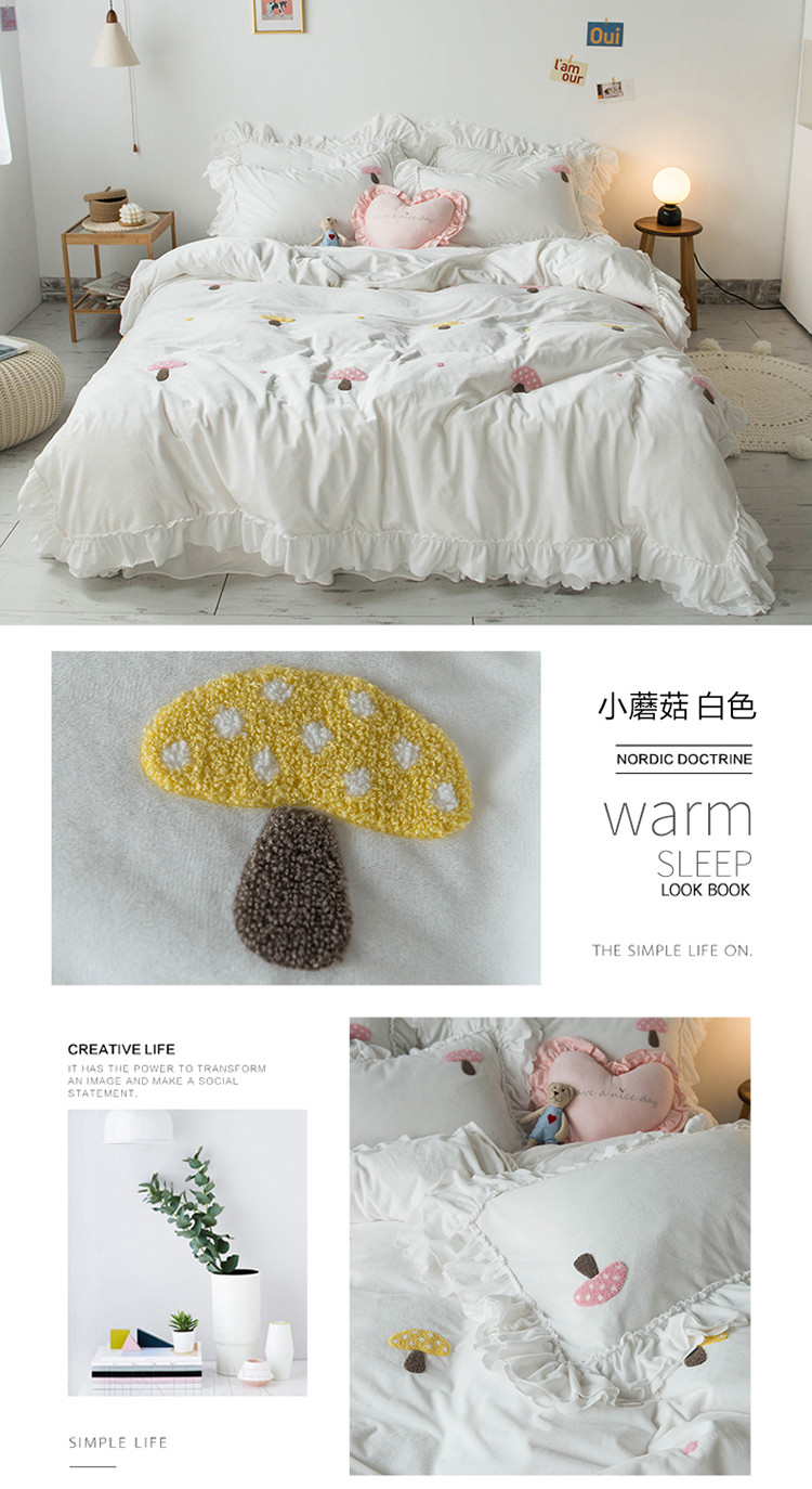 商品名称:淑女公社 2020新款秋冬毛巾绣13色四件套 小蘑菇白色