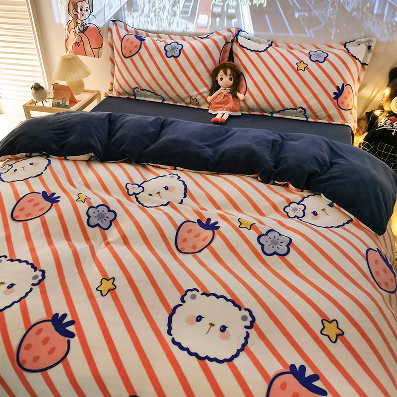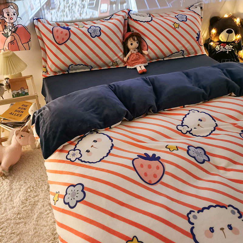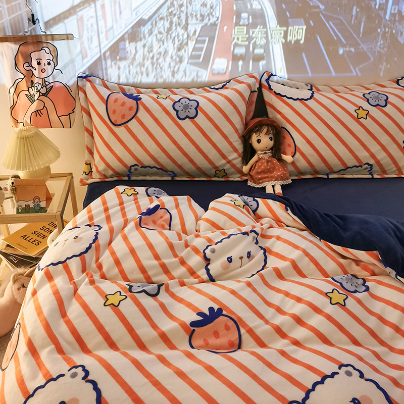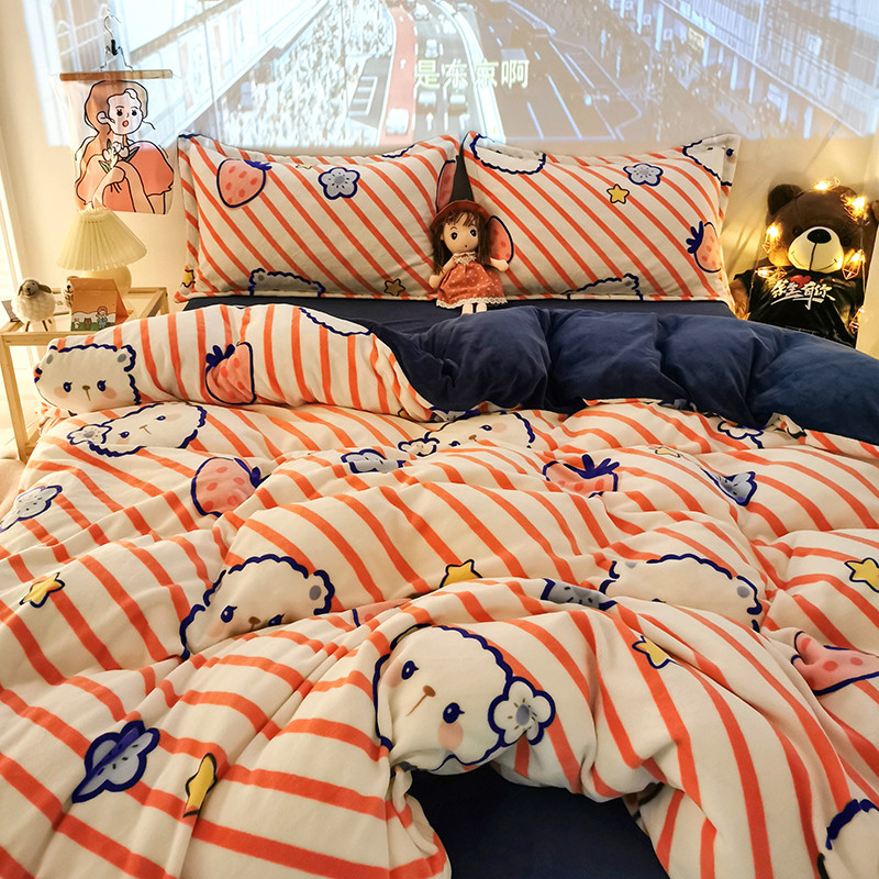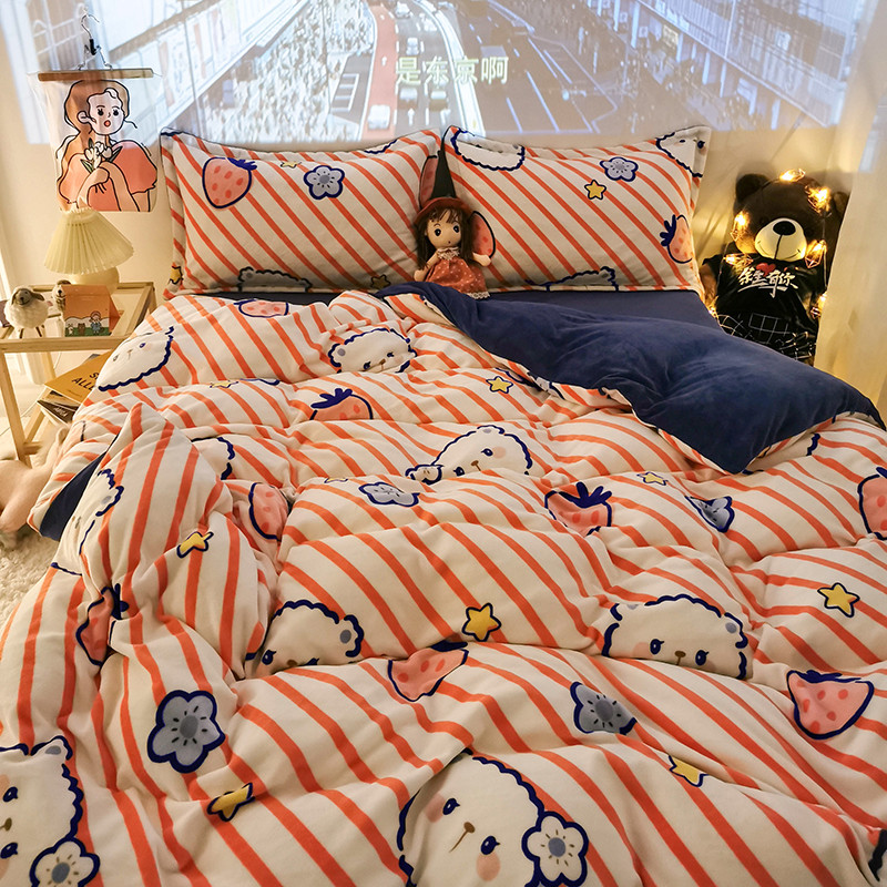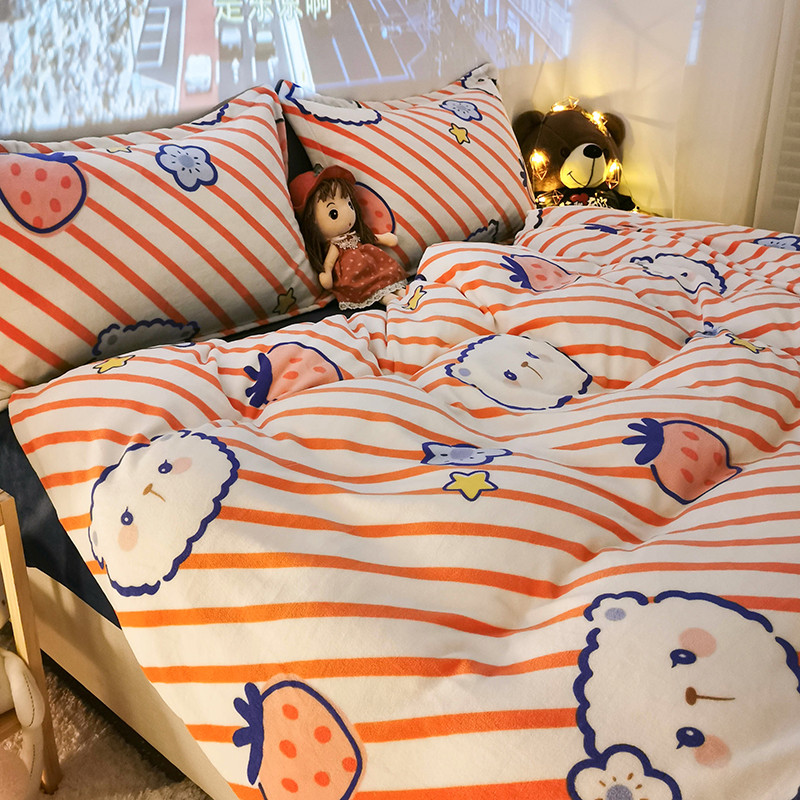 商品名称:HL原创 2020新款牛奶绒四件套 乖乖熊粉