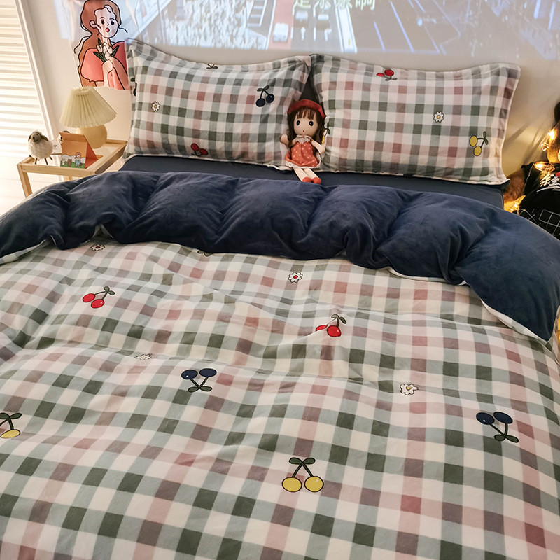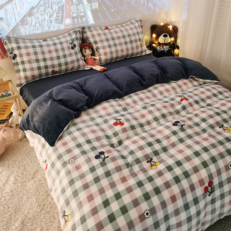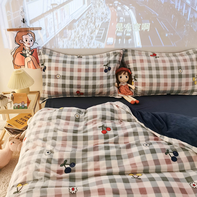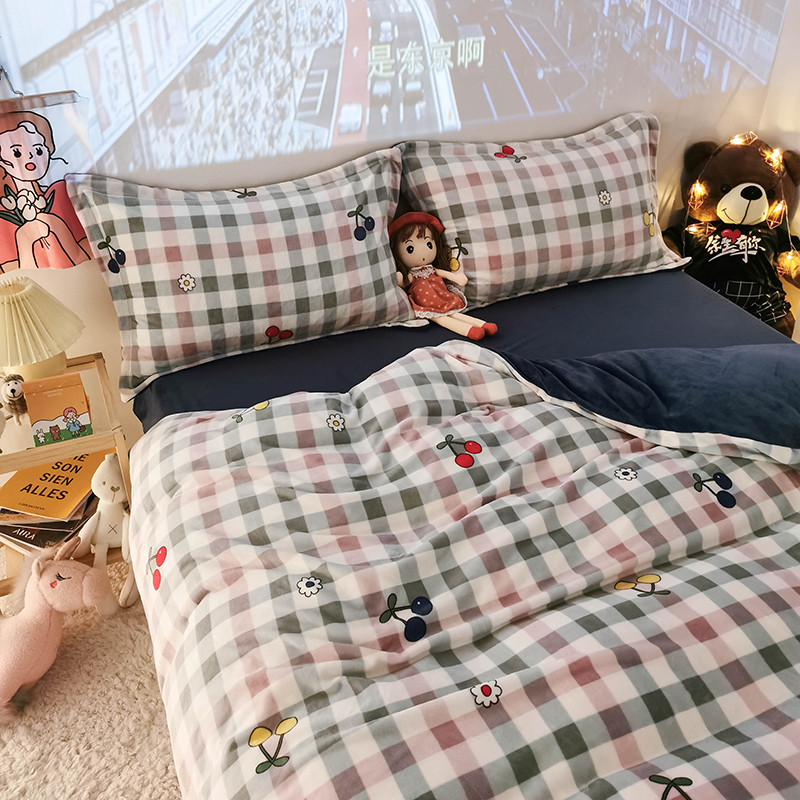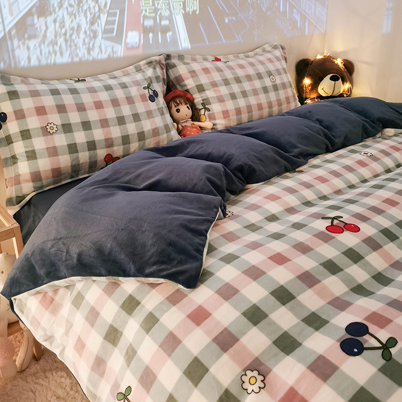HL原创 2020新款牛奶绒四件套 小殷桃