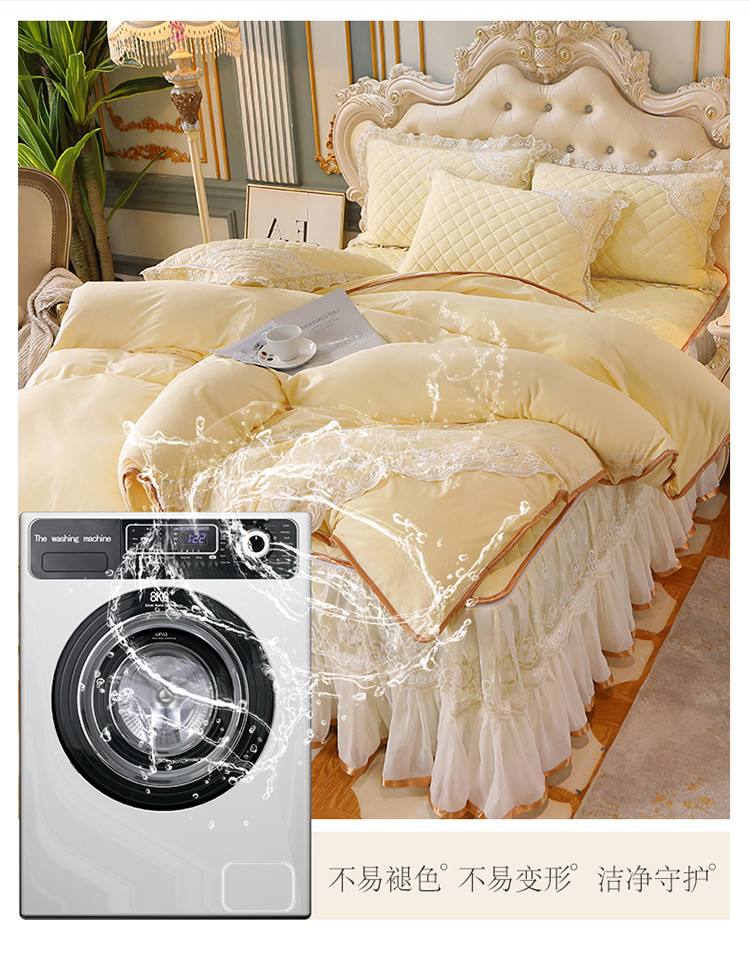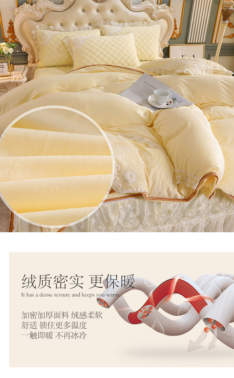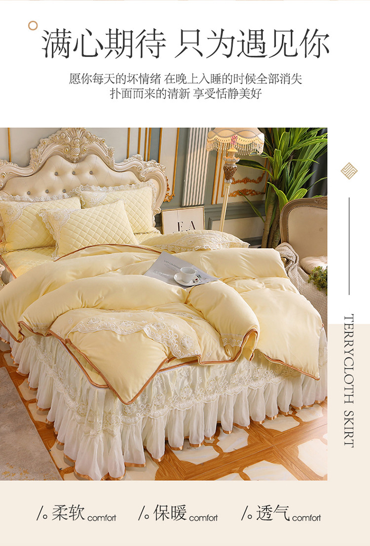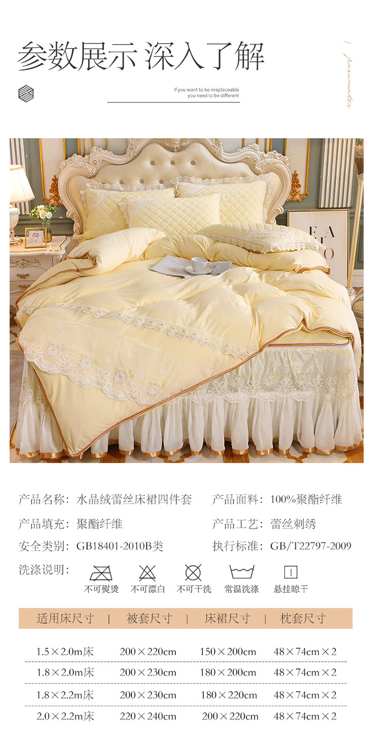 商品名称:网红馆 2025新款水晶绒蕾丝床裙四件套 香槟