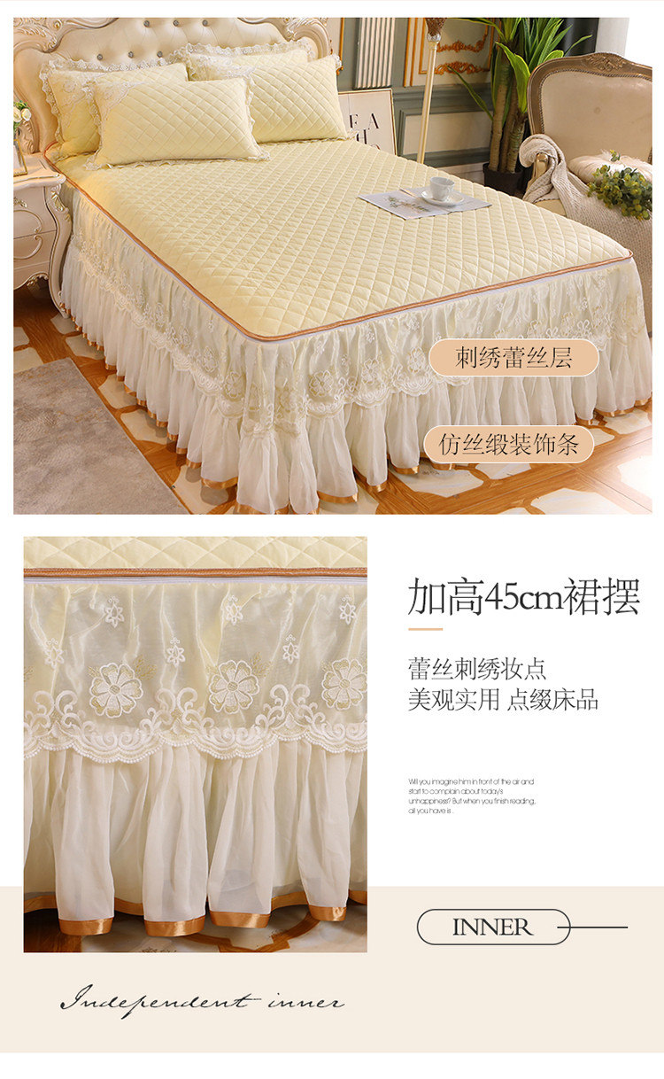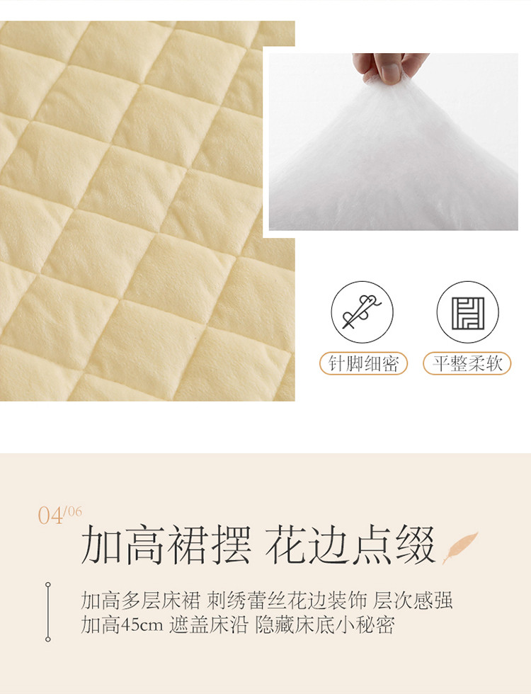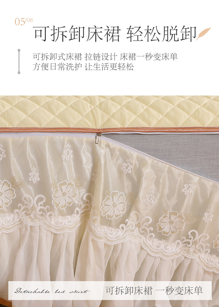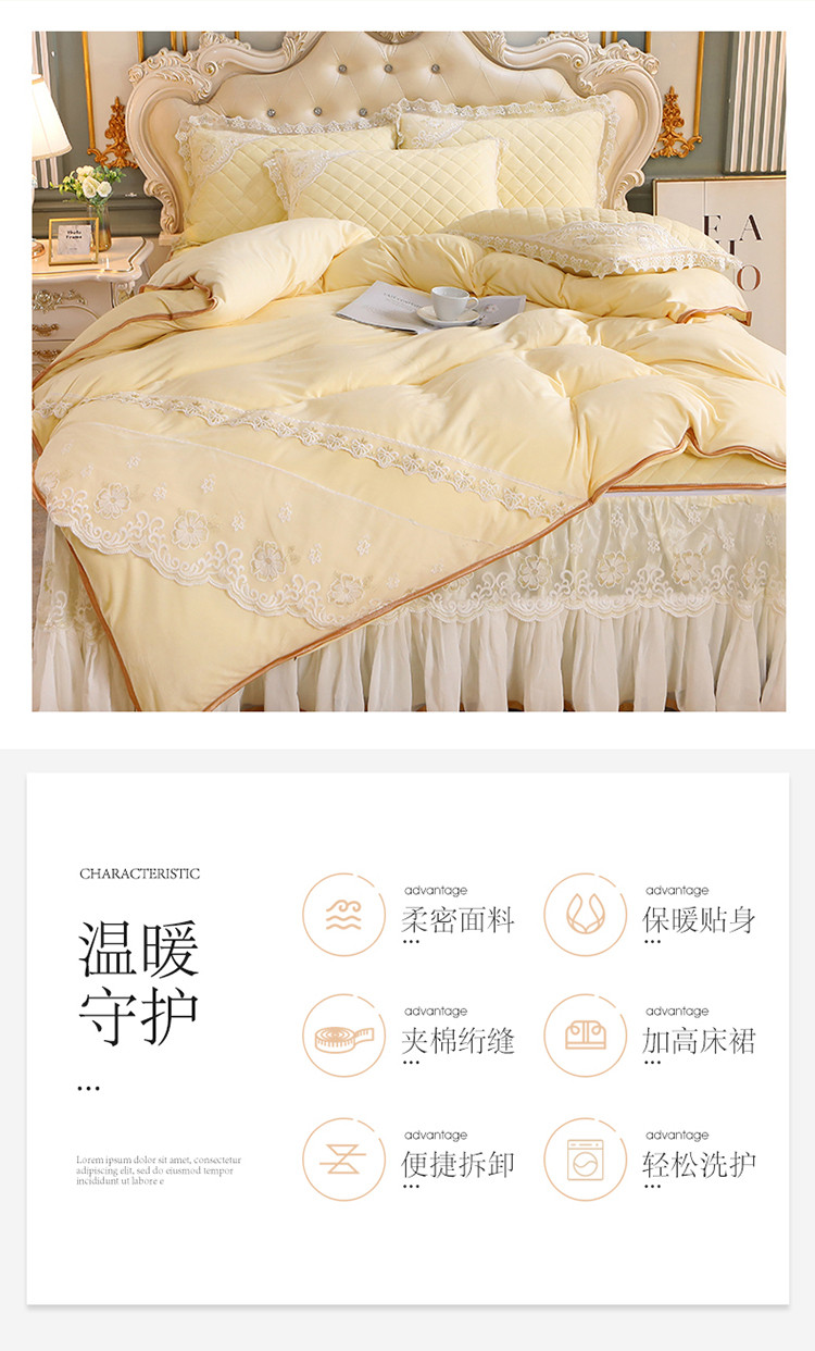 商品名称:网红馆 2025新款水晶绒蕾丝床裙四件套 香槟