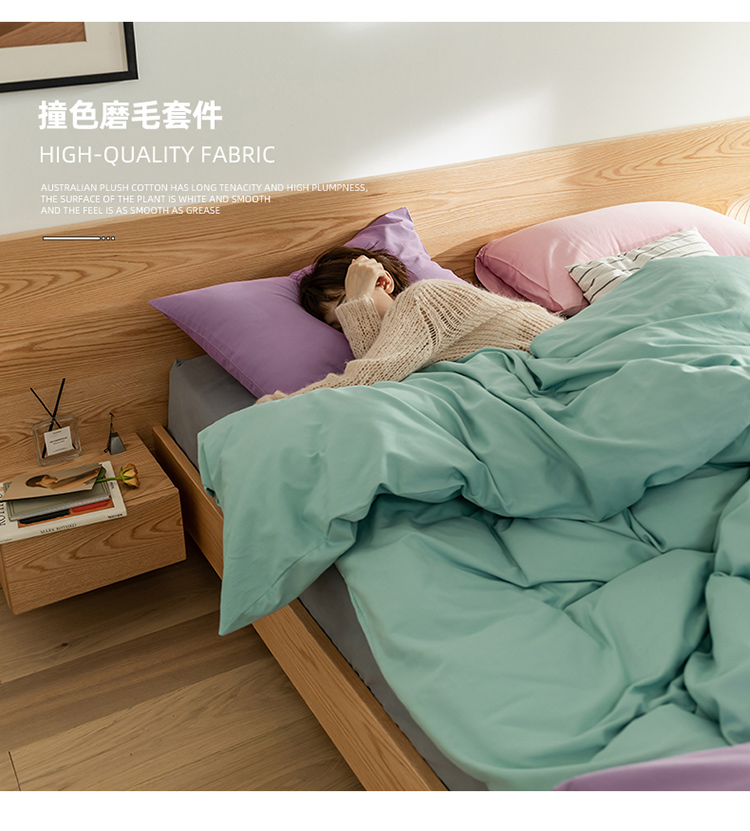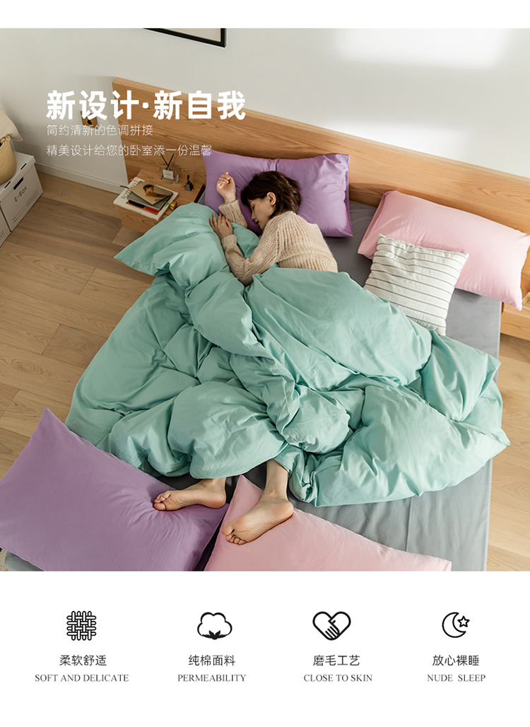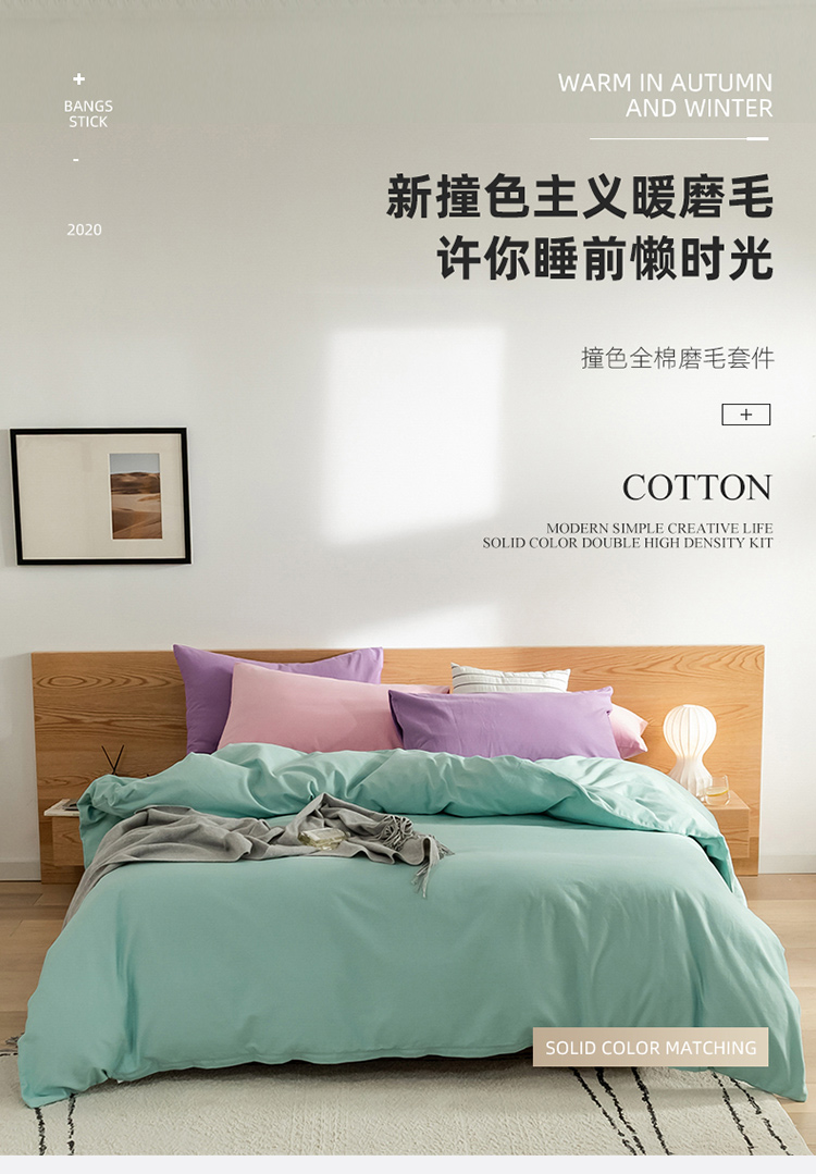 当前位置: 91家纺网 > 商品网购 > 床品套件 > 四件套 > 普通磨毛四件套 > 窝米 2020新款40s纯色磨毛四件套撞色系列 湖蓝
