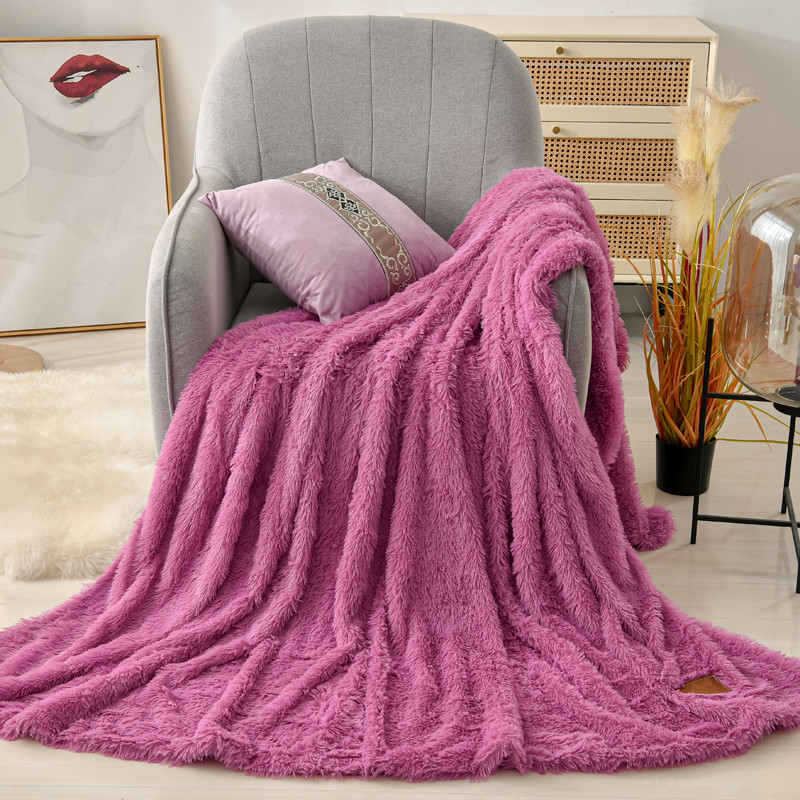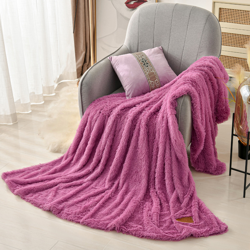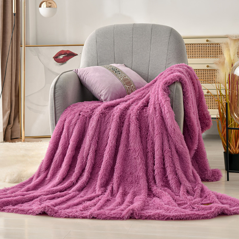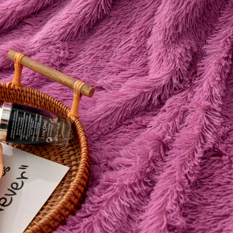 卡奥家纺 2021多功能双层超柔长毛毯空调毯毛绒被套 紫粉