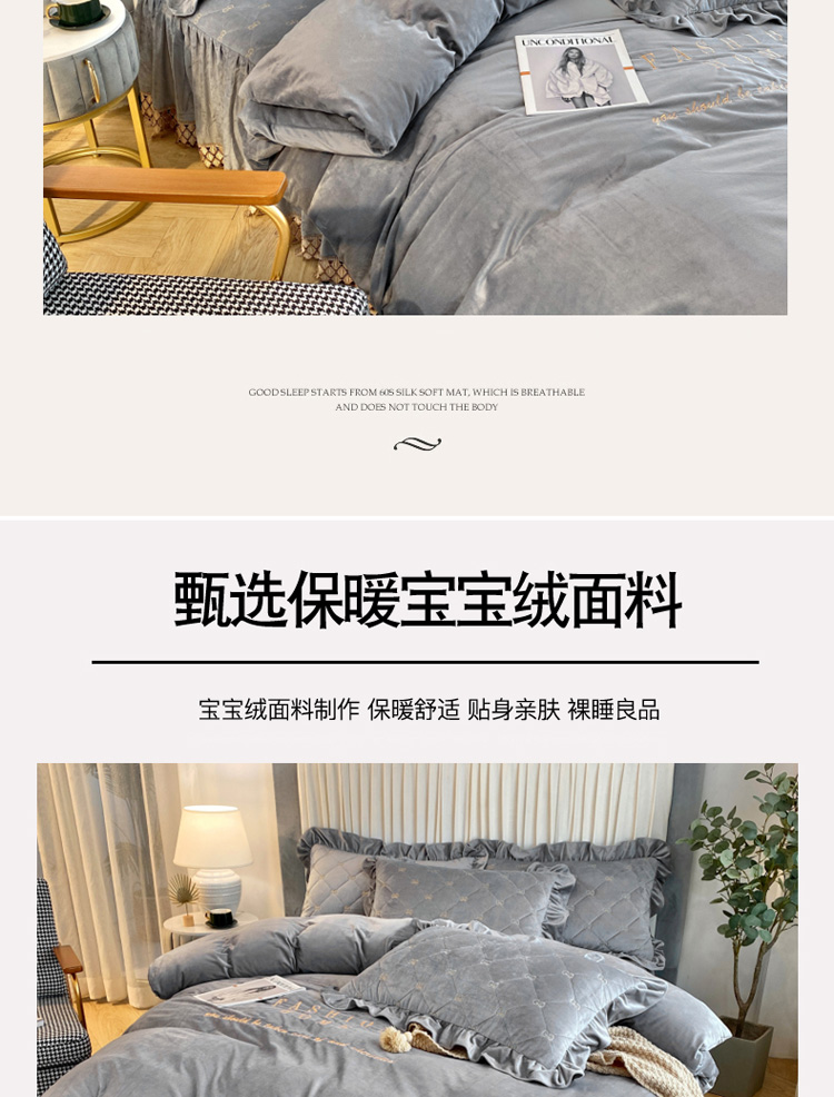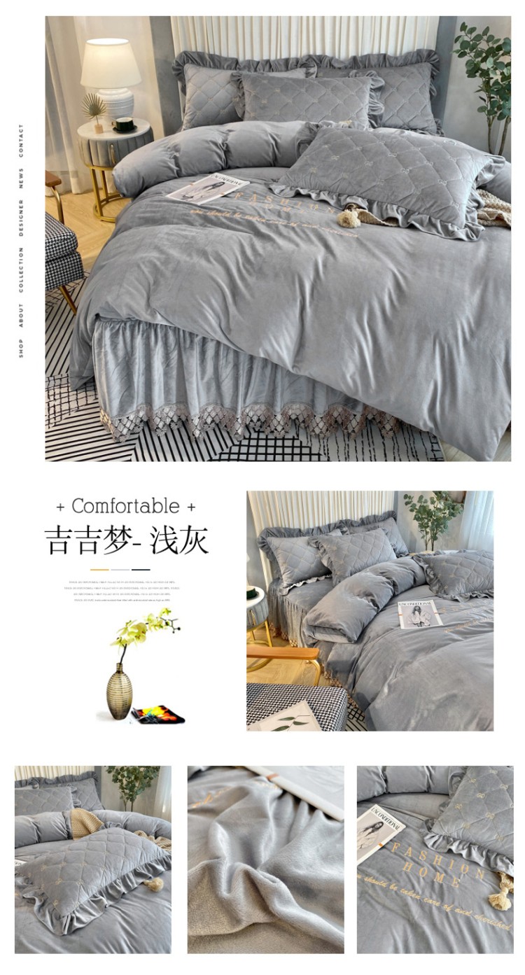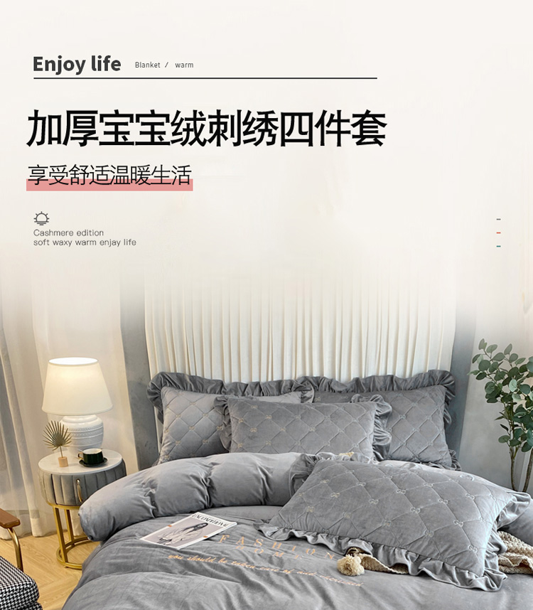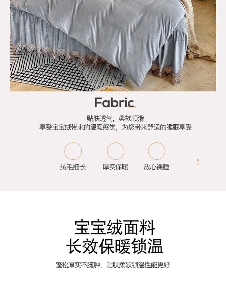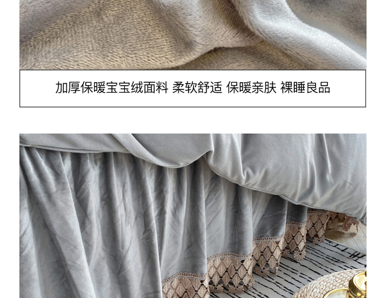 当前位置: 91家纺网 > 商品网购 > 床品套件 > 四件套 > 宝宝绒四件套 > 星尚家纺 2020新款宝宝绒夹棉床裙床盖四件套吉吉梦- 浅灰