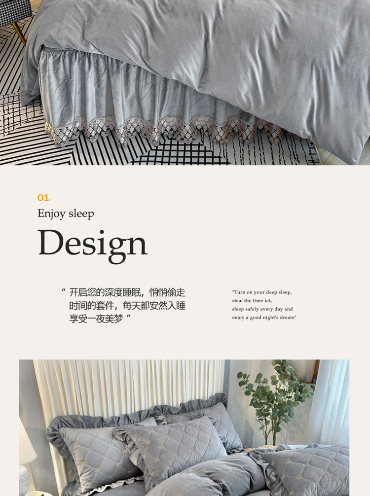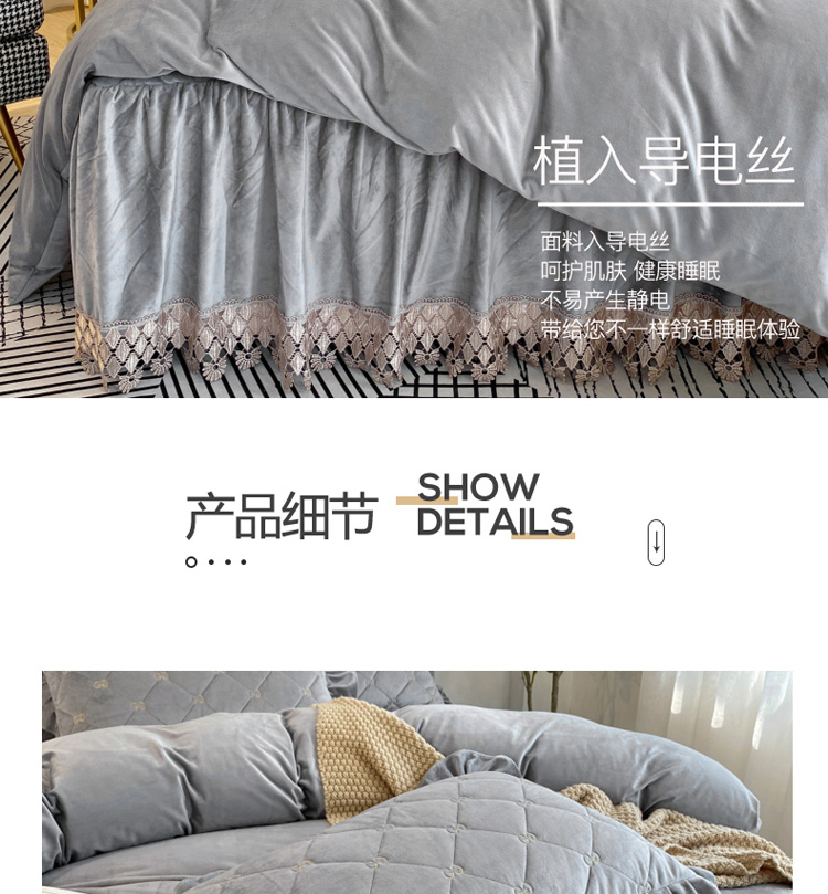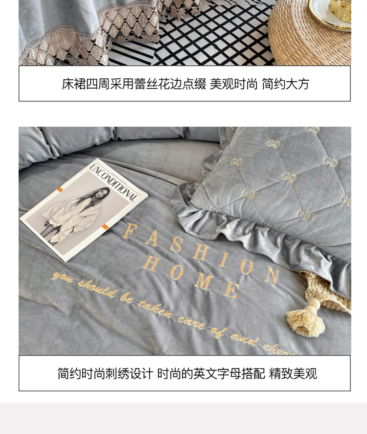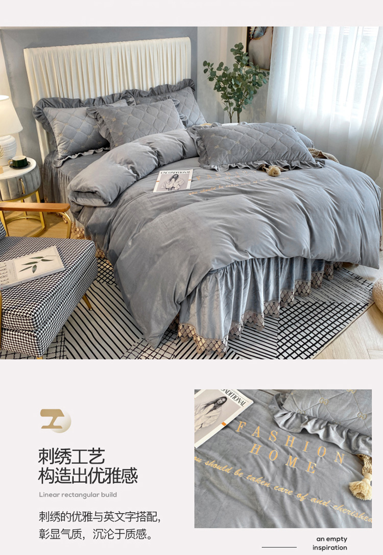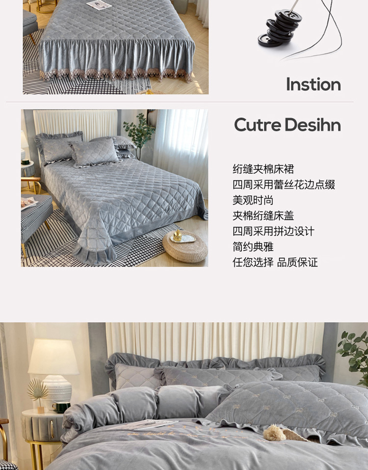 当前位置: 91家纺网 > 商品网购 > 床品套件 > 四件套 > 宝宝绒四件套 > 星尚家纺 2020新款宝宝绒夹棉床裙床盖四件套吉吉梦- 浅灰