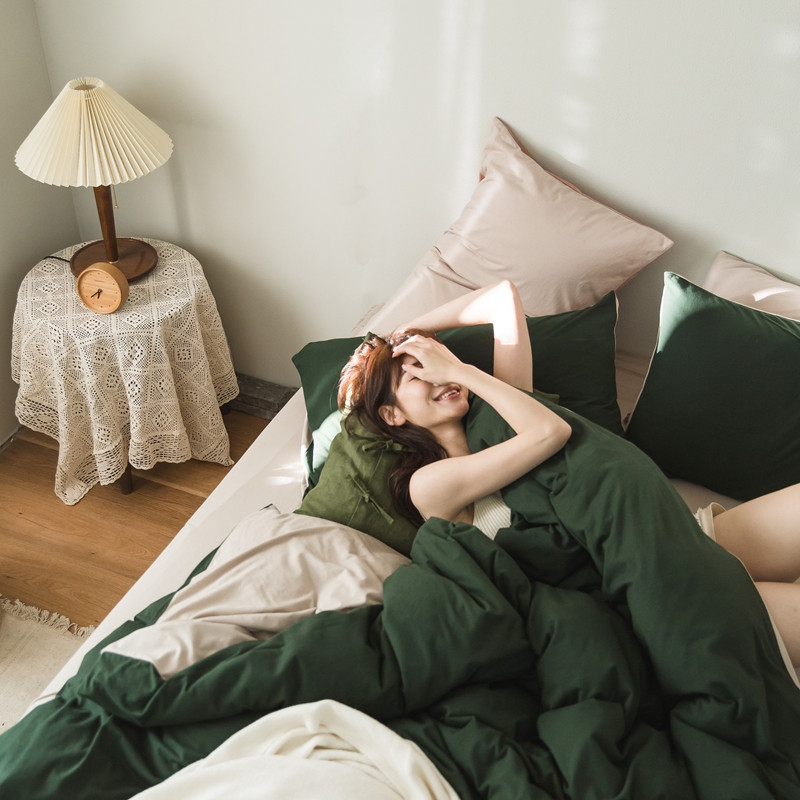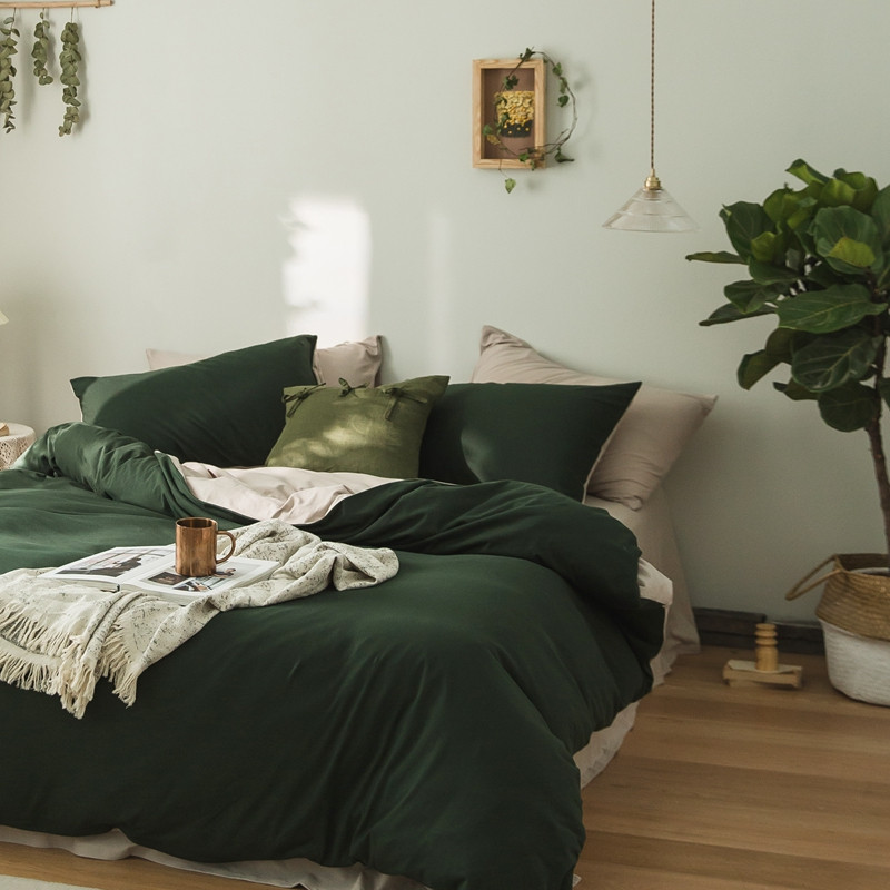商品名称:原研家居 2020新款全棉针织棉纯色系列单被套 深林绿米咖