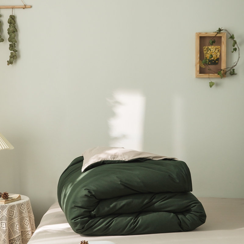 原研家居 2020新款全棉针织棉纯色系列单被套 深林绿米咖