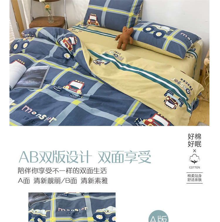 (总)感遇家纺 2022新款全棉印花四件套,格子小花,黑格恐龙,蓝色心情,浅暖