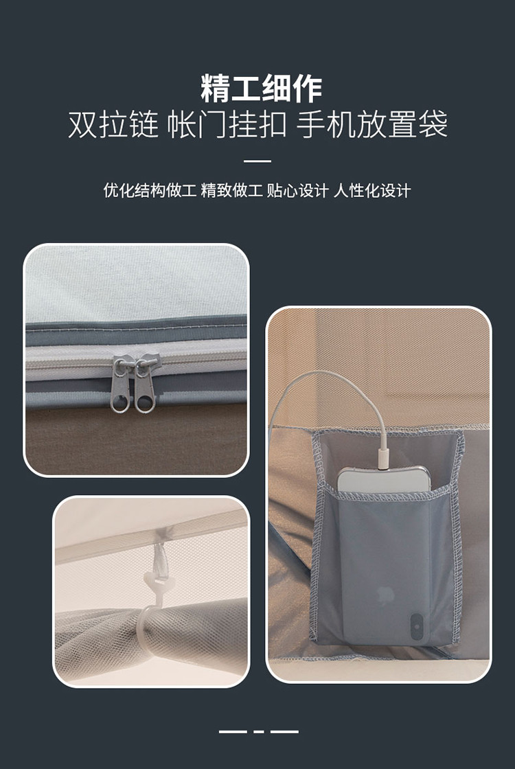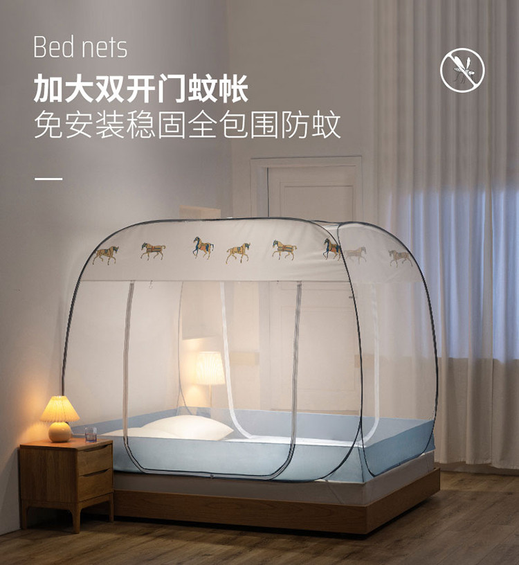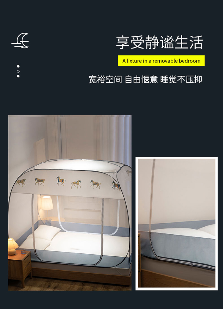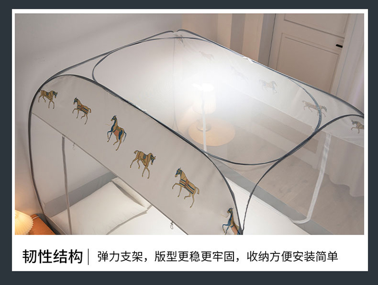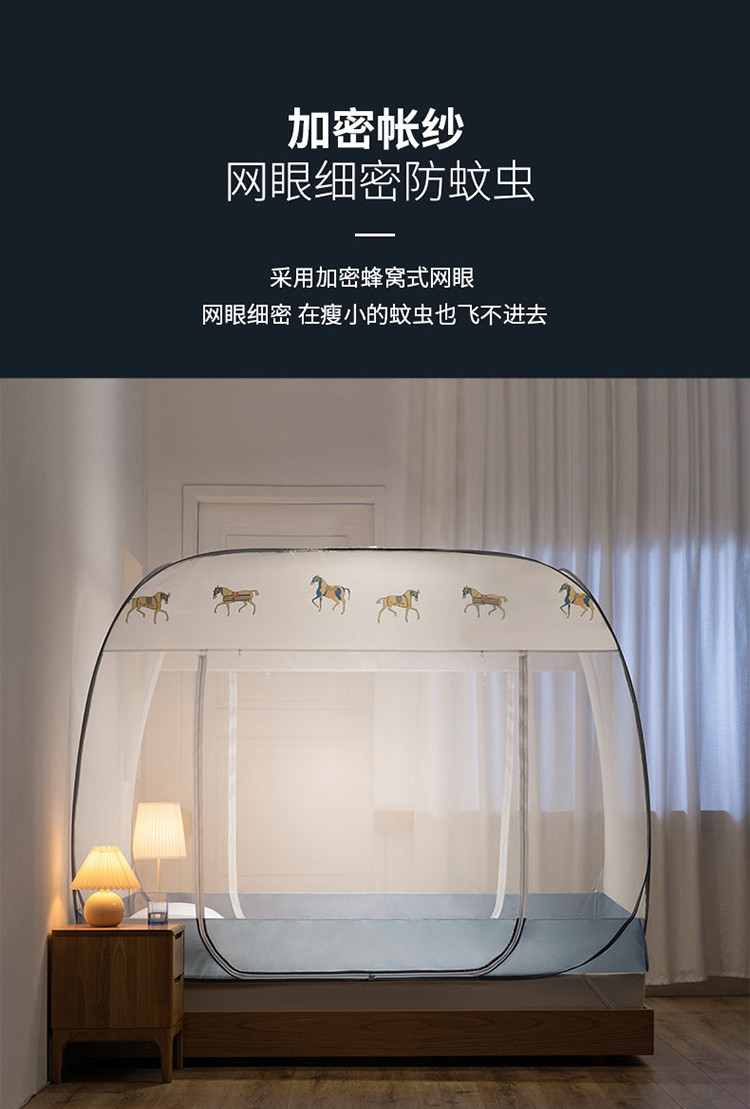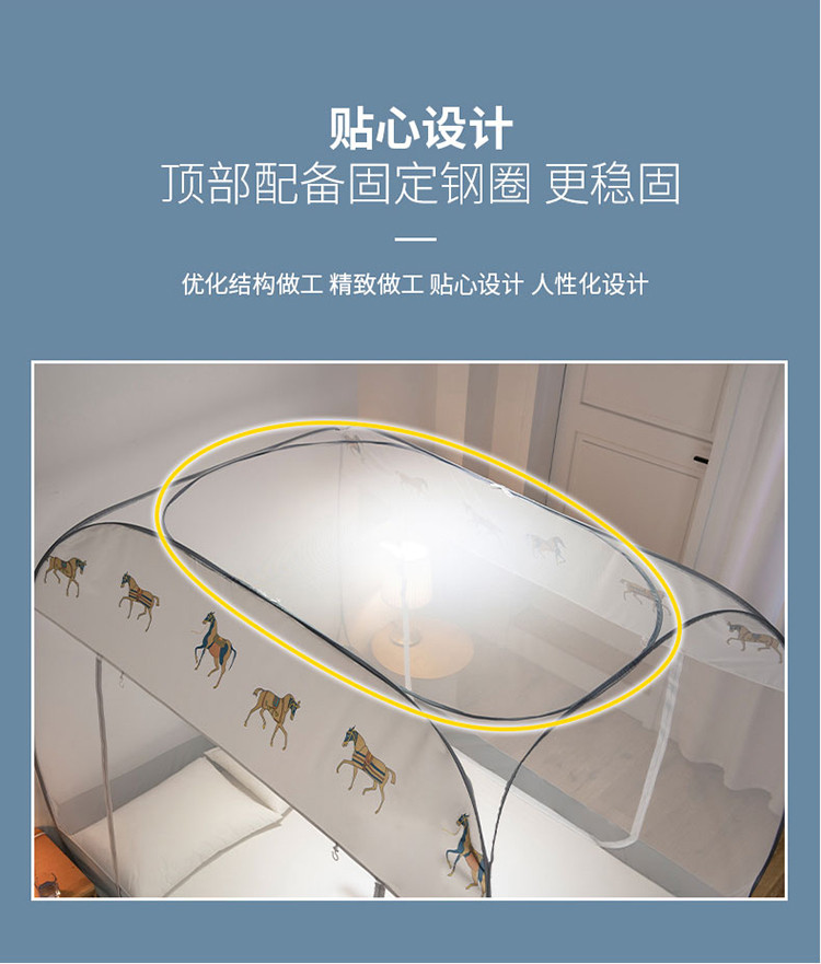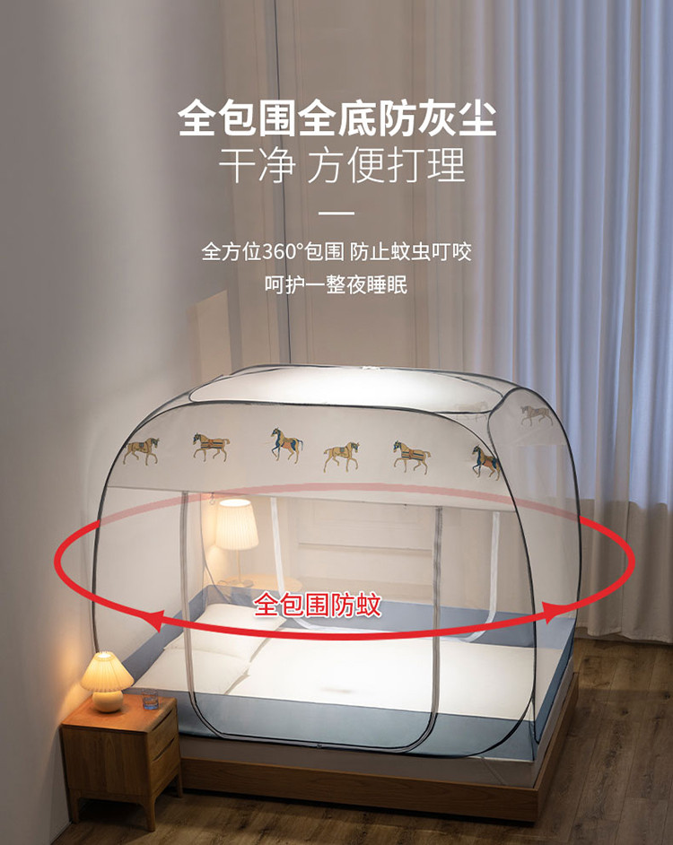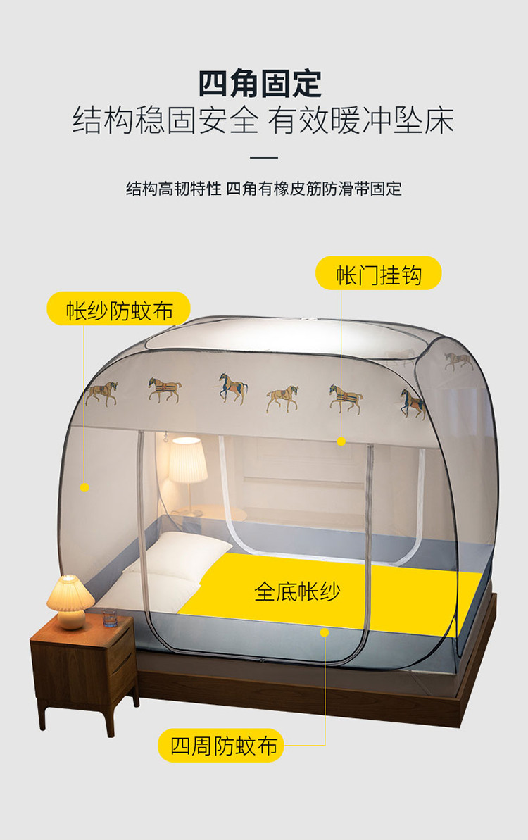 免安装坐床蚊帐U型拉链宽顶魔术蚊帐儿童防摔防蚊加高蒙古包 宝马-灰