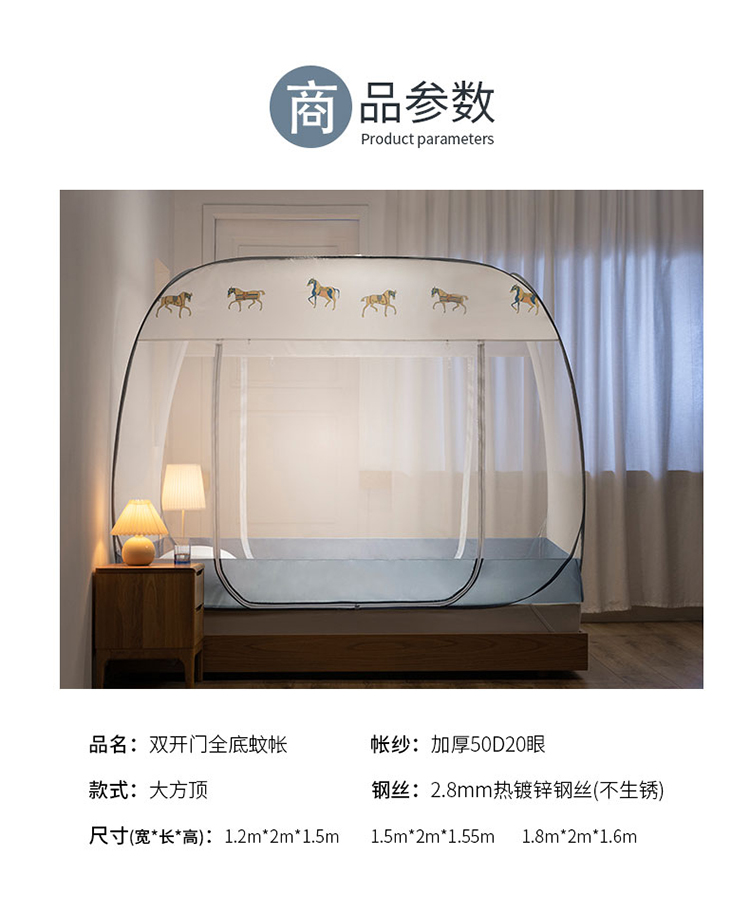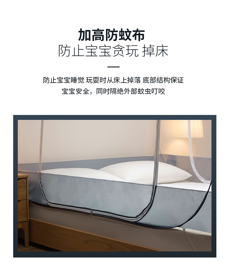 商品名称:免安装坐床蚊帐U型拉链宽顶魔术蚊帐儿童防摔防蚊加高蒙古包 宝马-灰