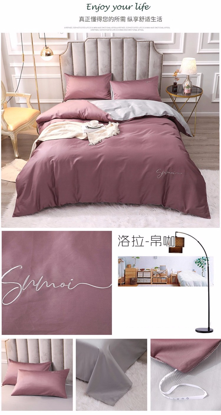 2021新款纯色拼色纯棉全棉60S贡缎长绒棉绣花四件套 帛咖