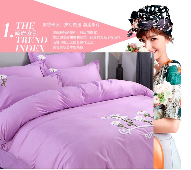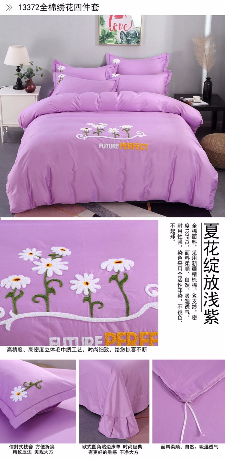 商品名称:2021新款全棉13372毛巾绣纯棉刺绣花四件套夏花绽放浅紫