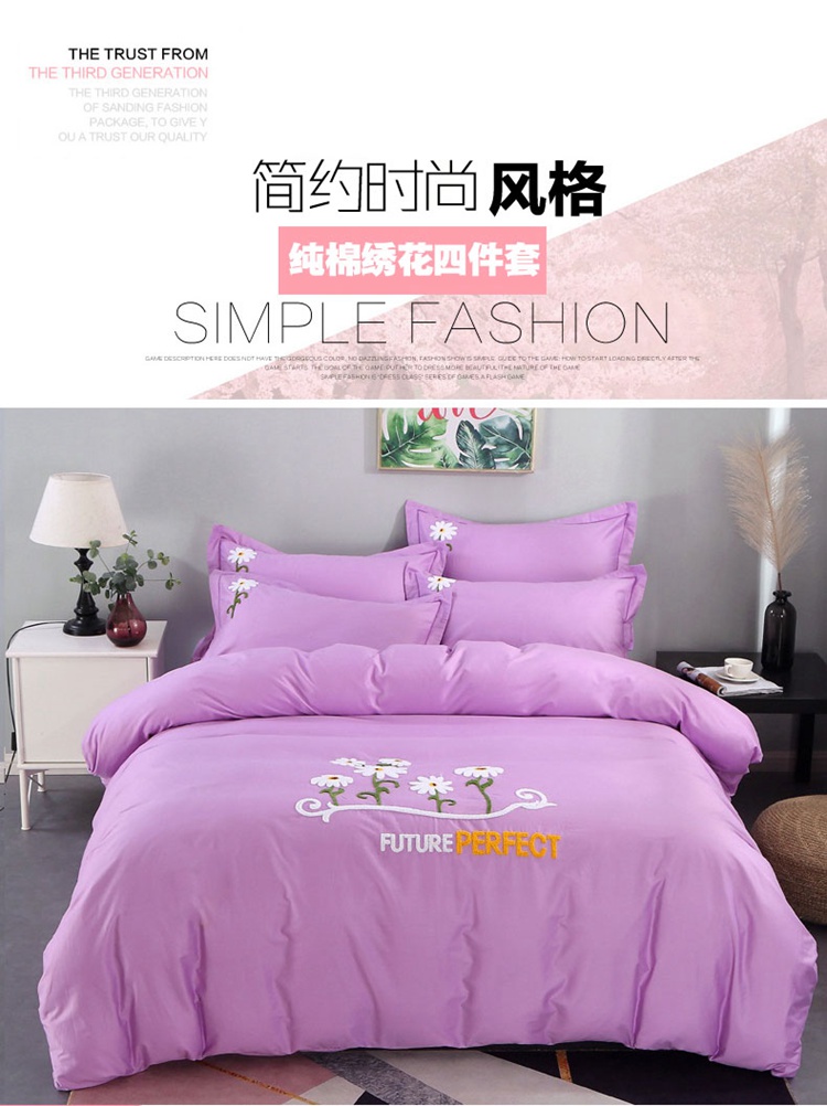 2021新款全棉13372毛巾绣纯棉刺绣花四件套夏花绽放浅紫