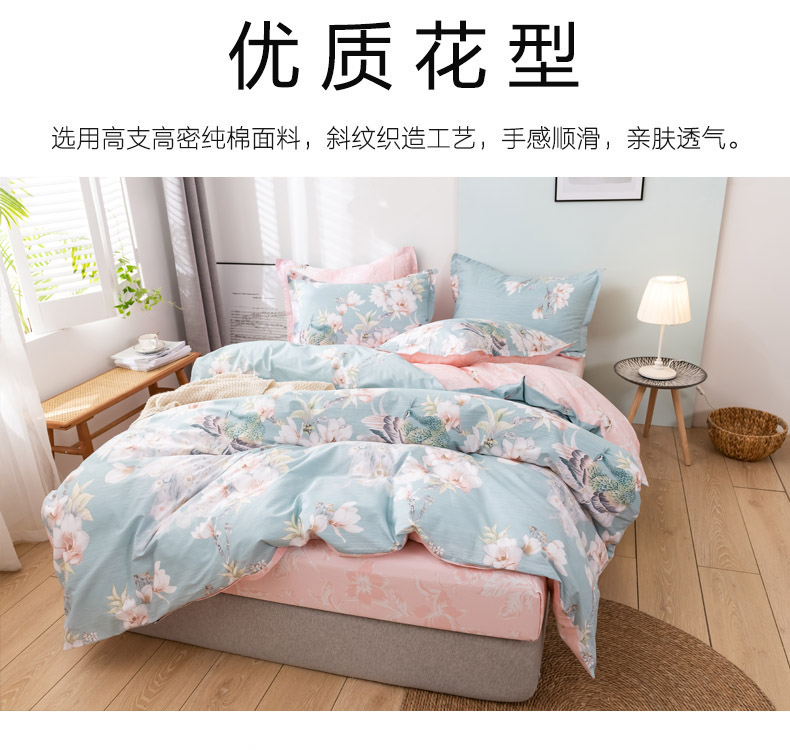 商品名称:星期三 2021新款花卉系列全棉13372四件套(加老板微信有会员价) 飞花似梦