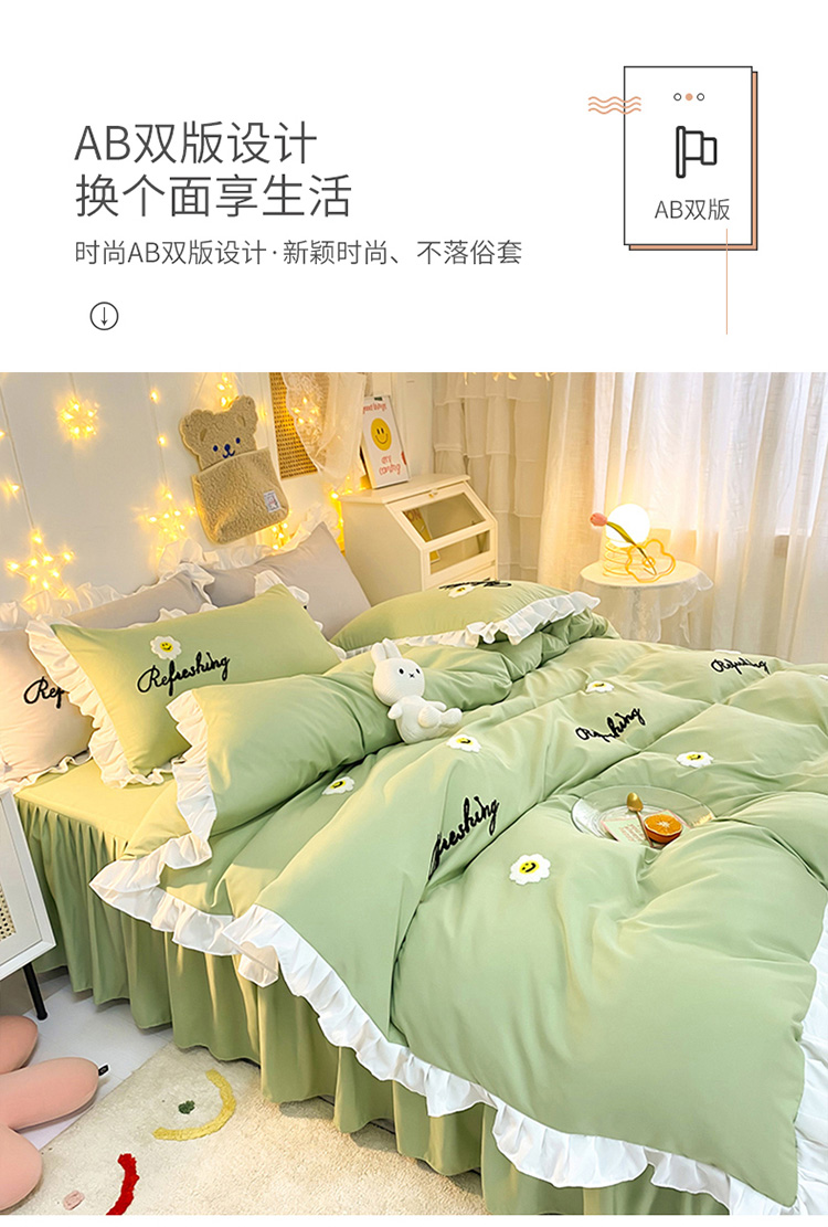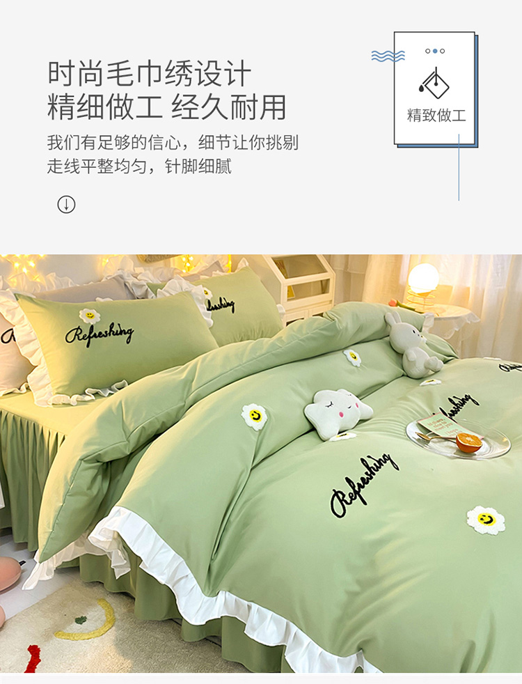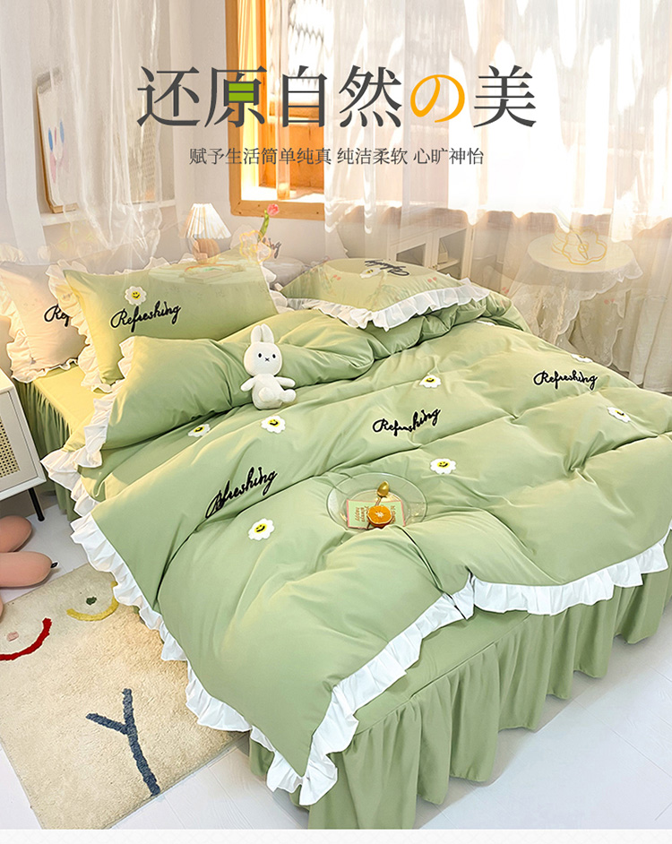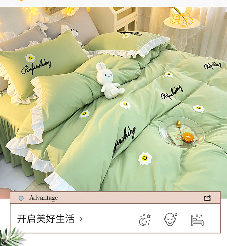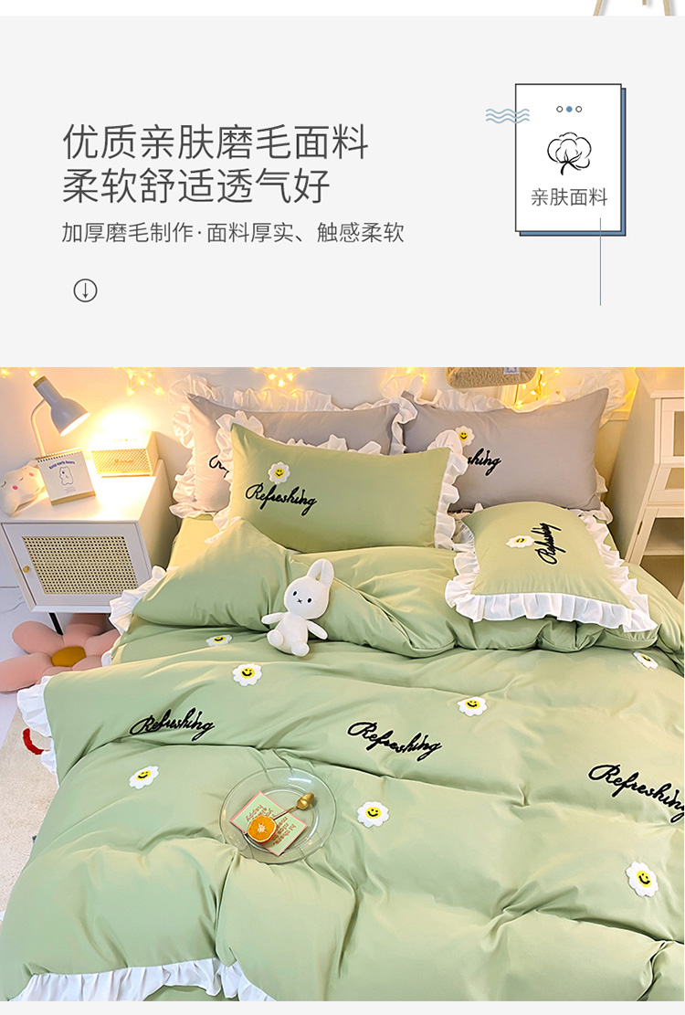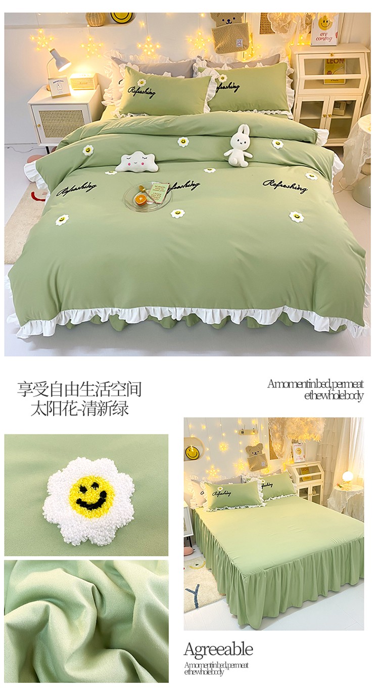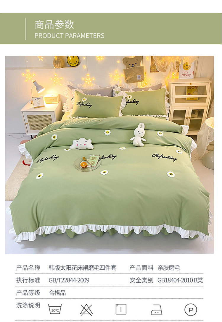 当前位置: 91家纺网 > 商品网购 > 床品套件 > 四件套 > 普通磨毛四件套 > 包小包 2024新款韩版太阳花亲肤磨毛四件套 太阳花-清新绿