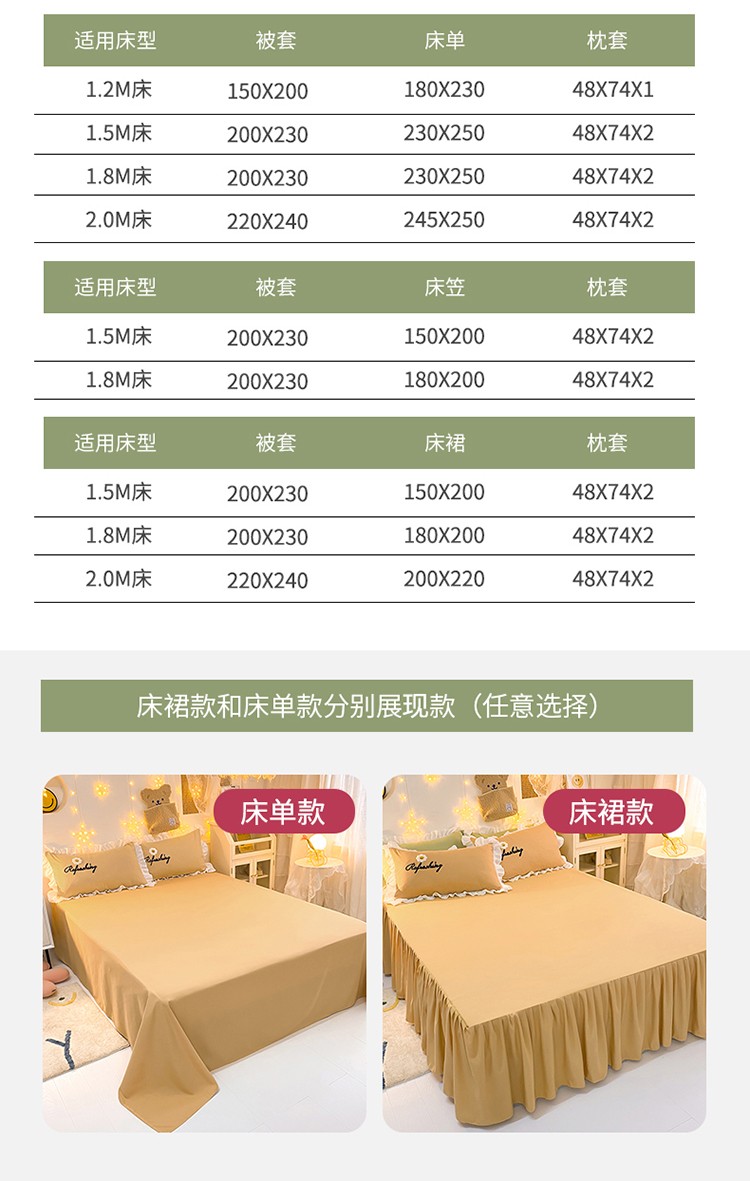 2.0m床裙款四件套 | ¥88.00 |