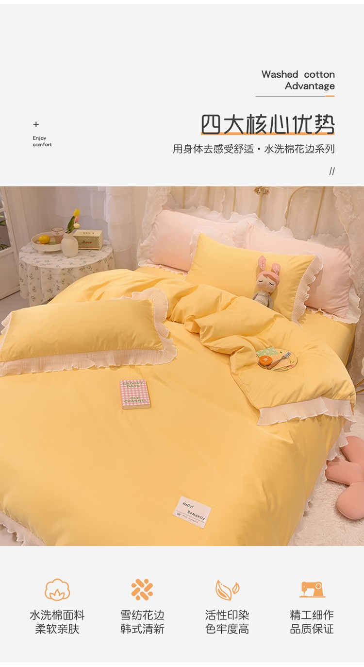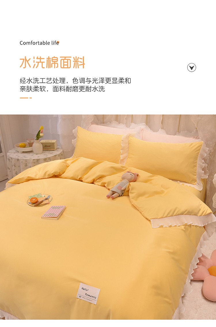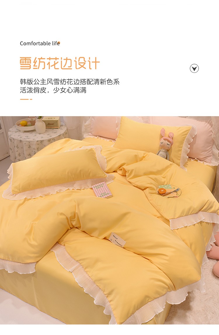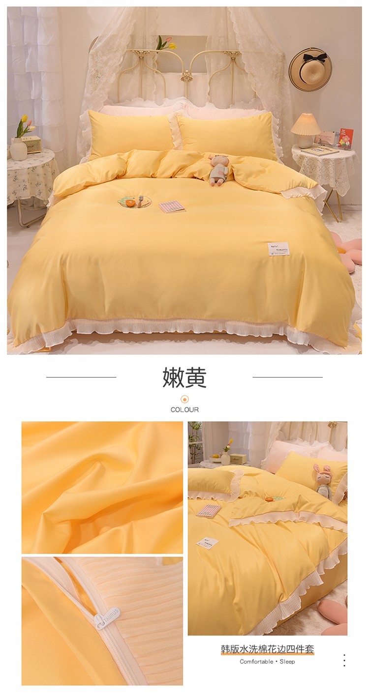 商品名称:2024新款韩版公主风雪纺花边水洗棉四件套 诗语嫩黄