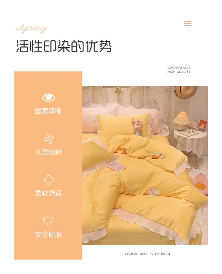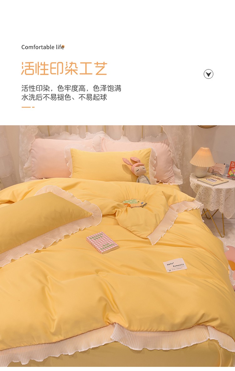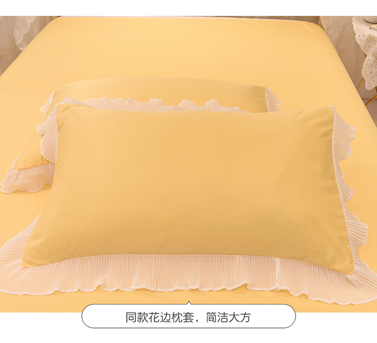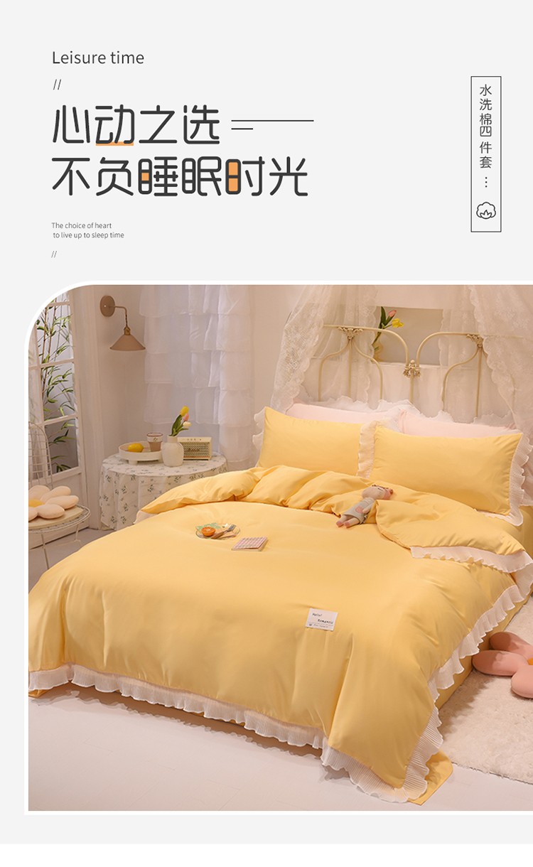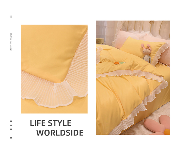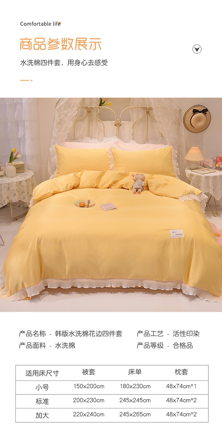 商品名称:2024新款韩版公主风雪纺花边水洗棉四件套 诗语嫩黄