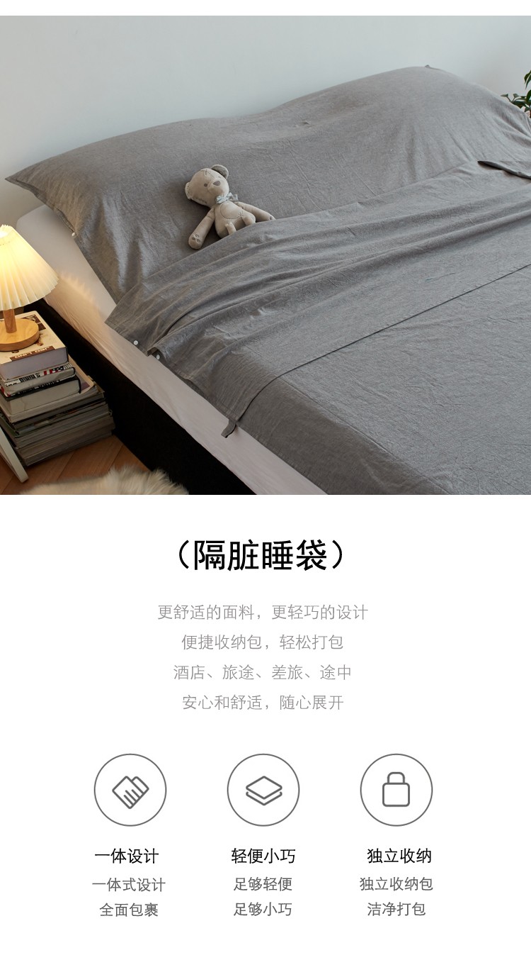 无印色织全棉水洗棉酒店隔脏睡袋便携式出差旅游行单双人床单被套