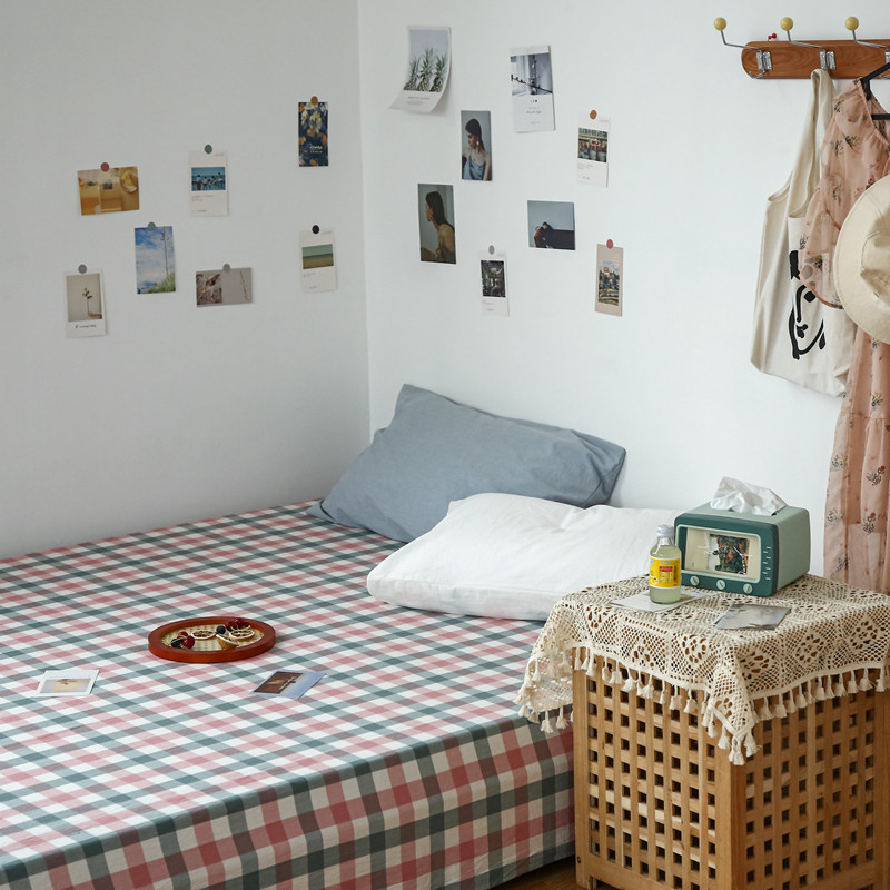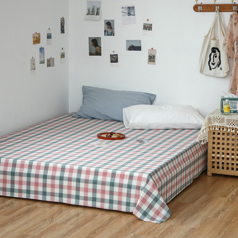 安莱生活 2021新款色织全棉水洗棉单床单 七彩玫粉