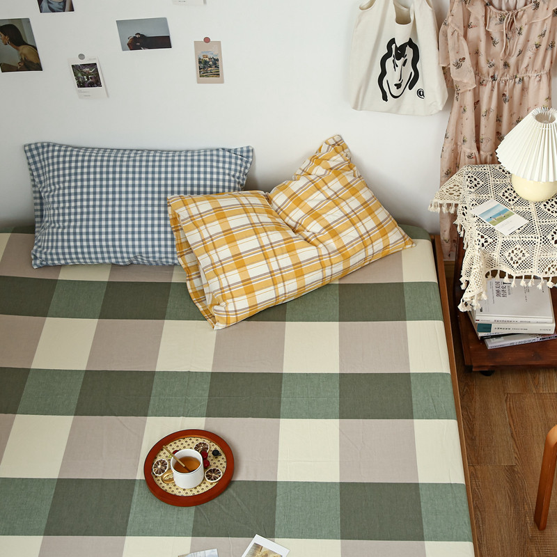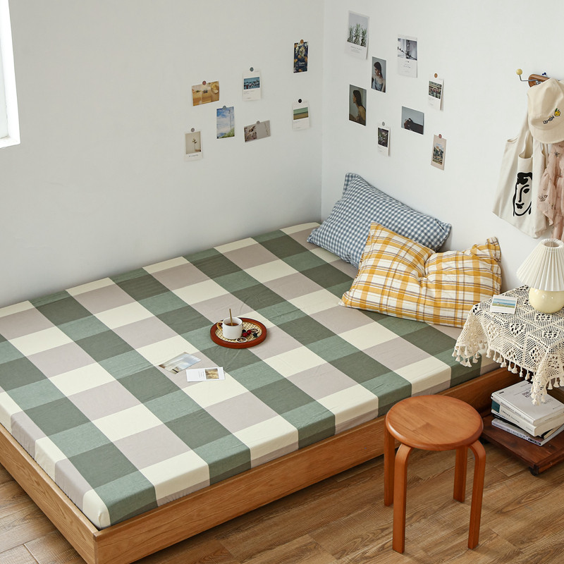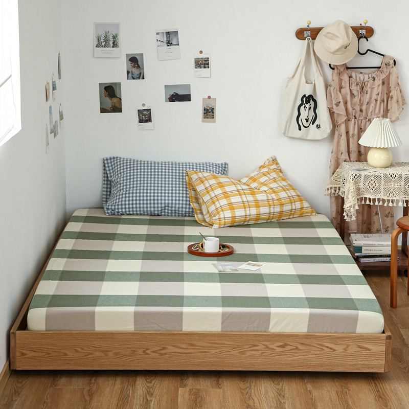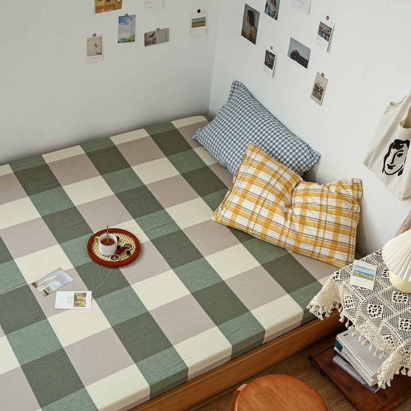 安莱生活 2021新款色织全棉水洗棉单床笠 绿大格