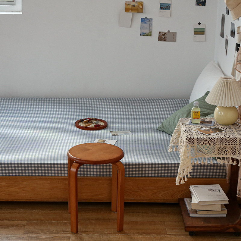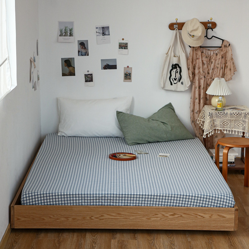 安莱生活 2021新款色织全棉水洗棉单床笠 浅蓝小格