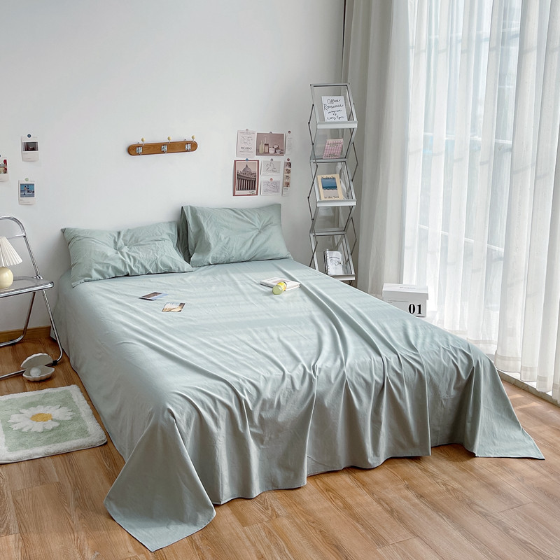 安莱生活 2021新款全棉水洗棉单床单 青柠