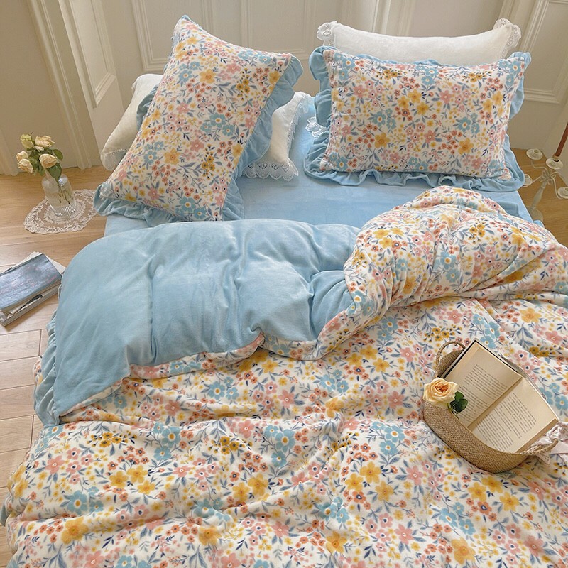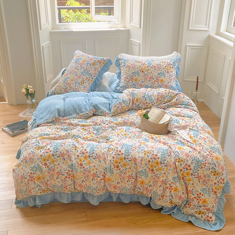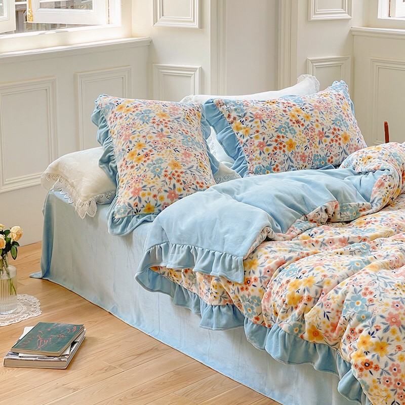 圆岛 2021新款法式浪漫牛奶绒四件套 花间 兰