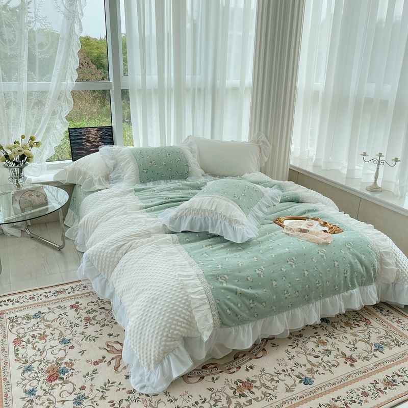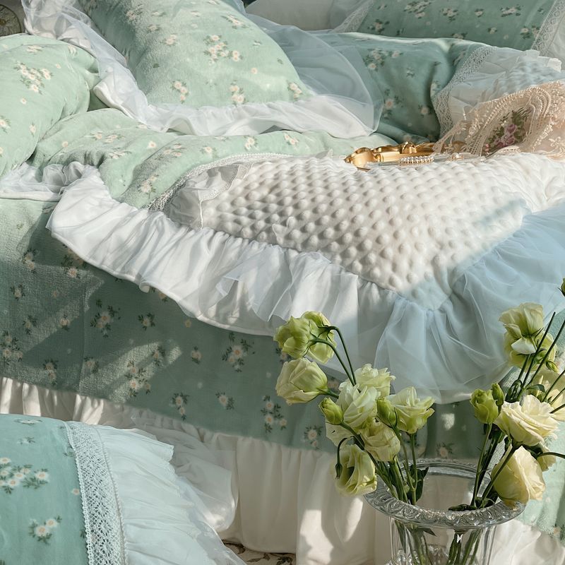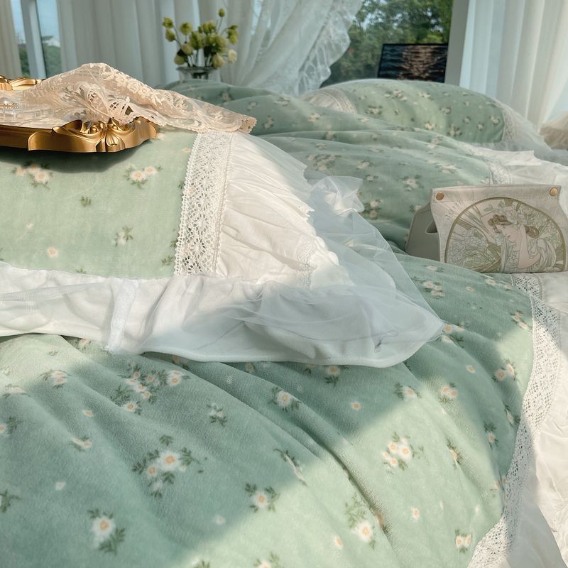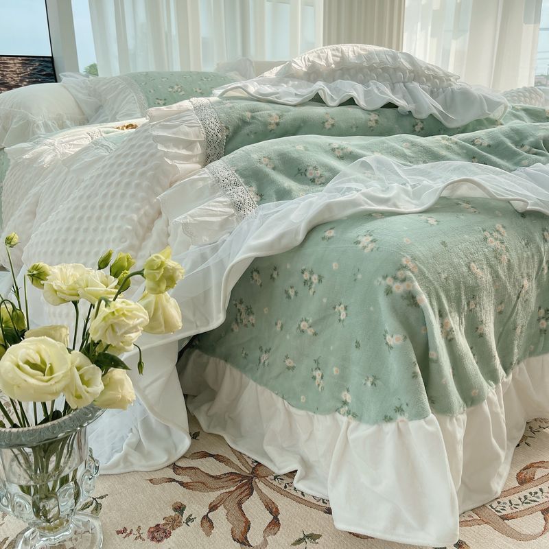 2021网红直播爆款秋冬碎花绒四件套牛奶绒四件套 半夏