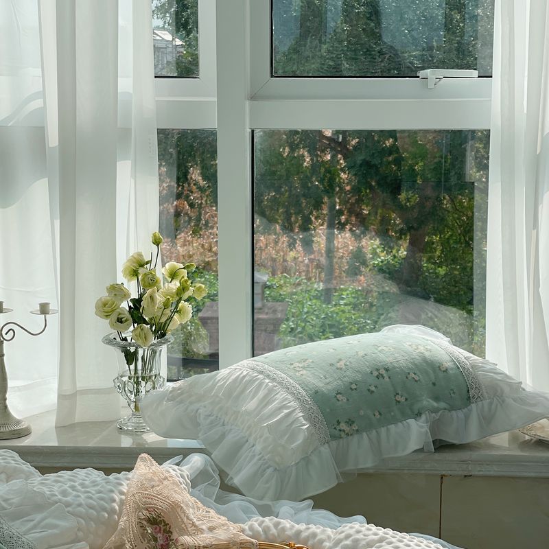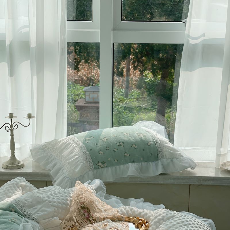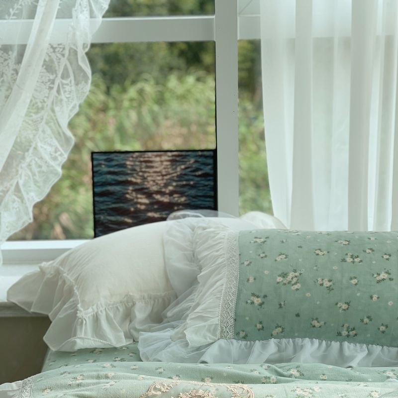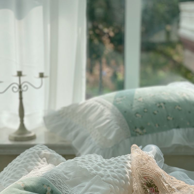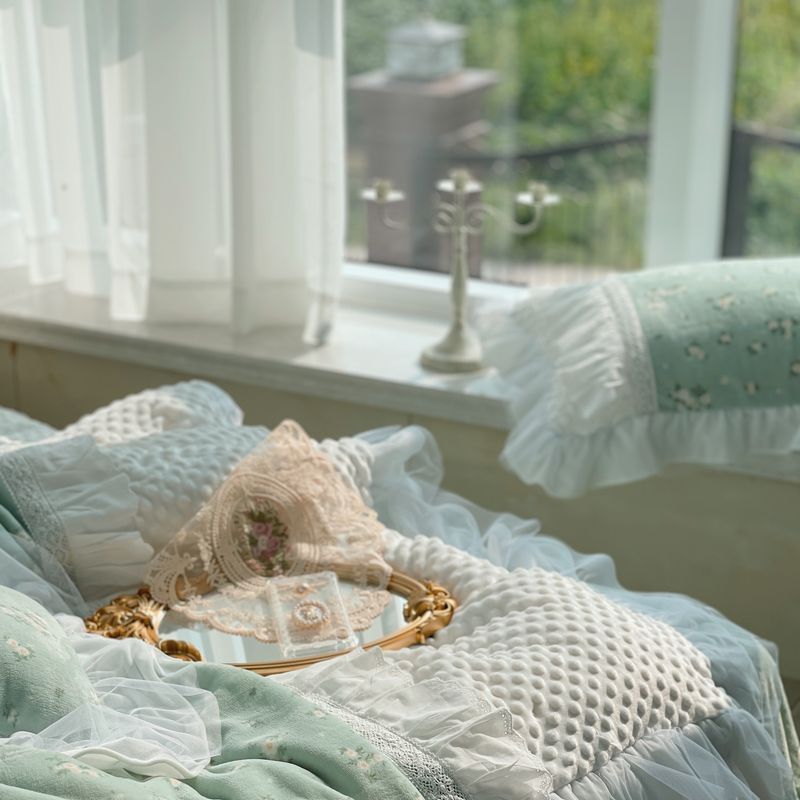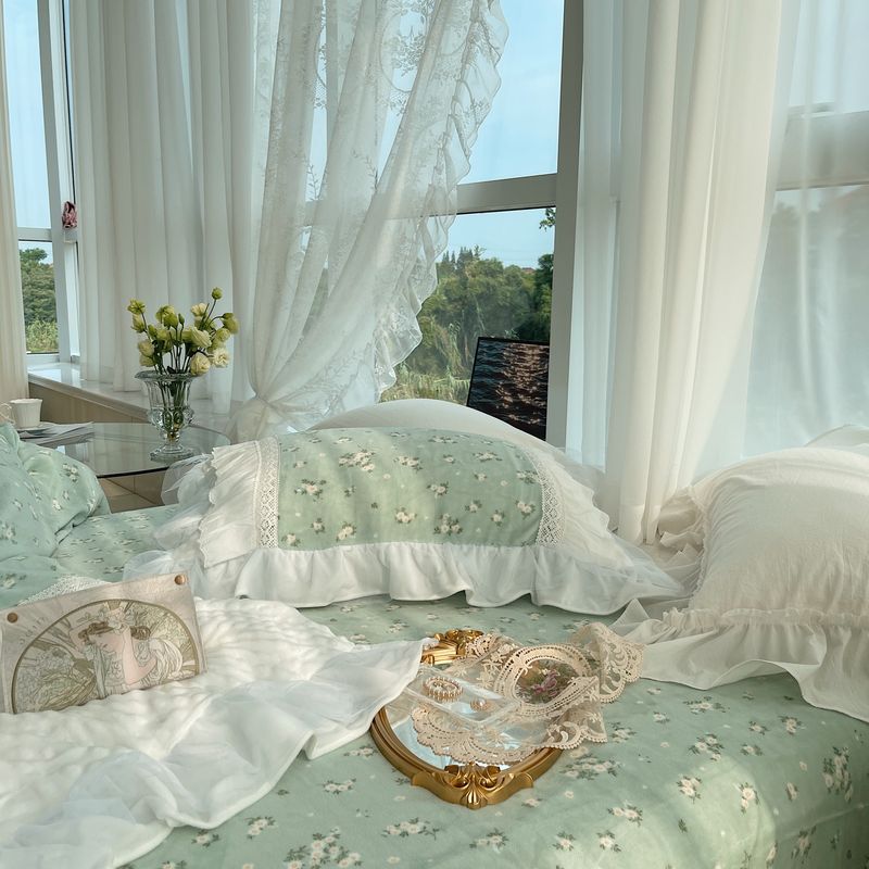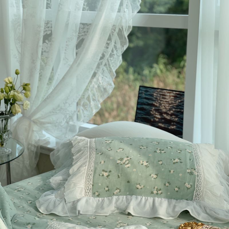 (总)嗨购 2022新款40支水洗棉刺绣花边四件套-春日秋千,春日秋千-粉,春日秋千-绿