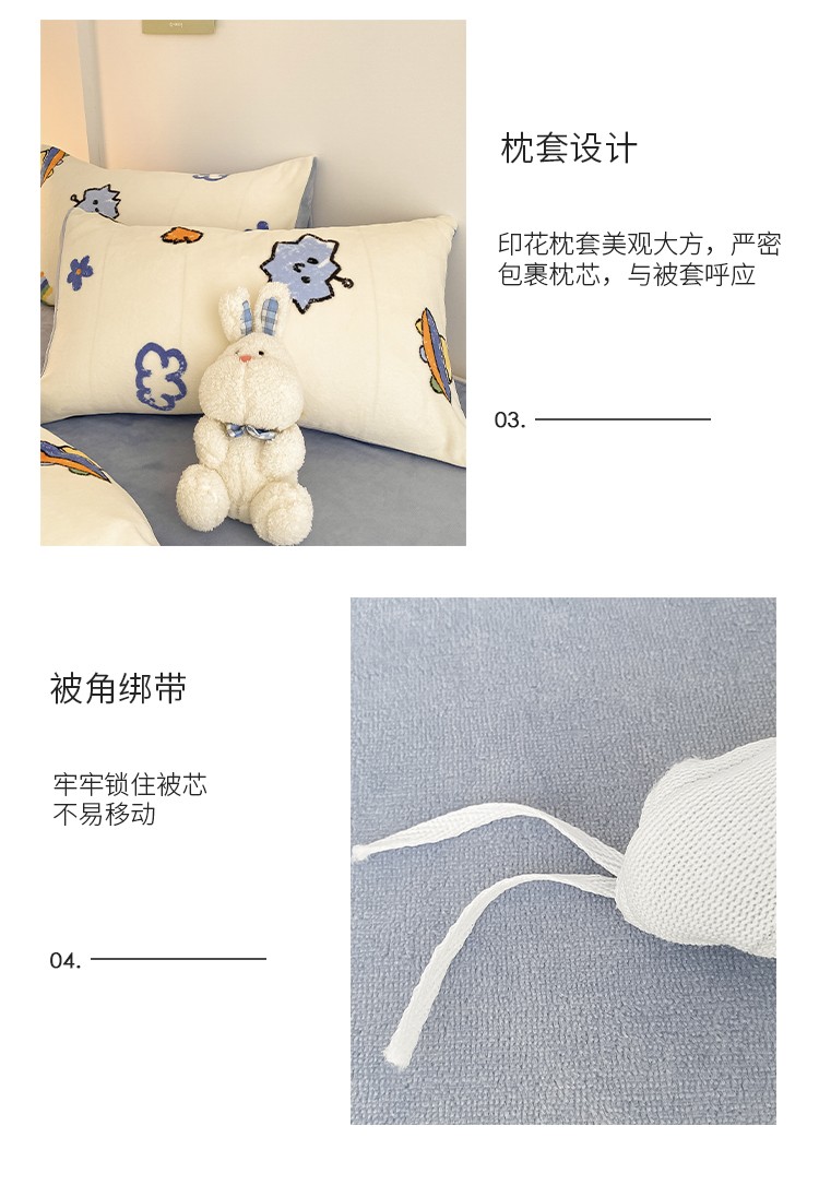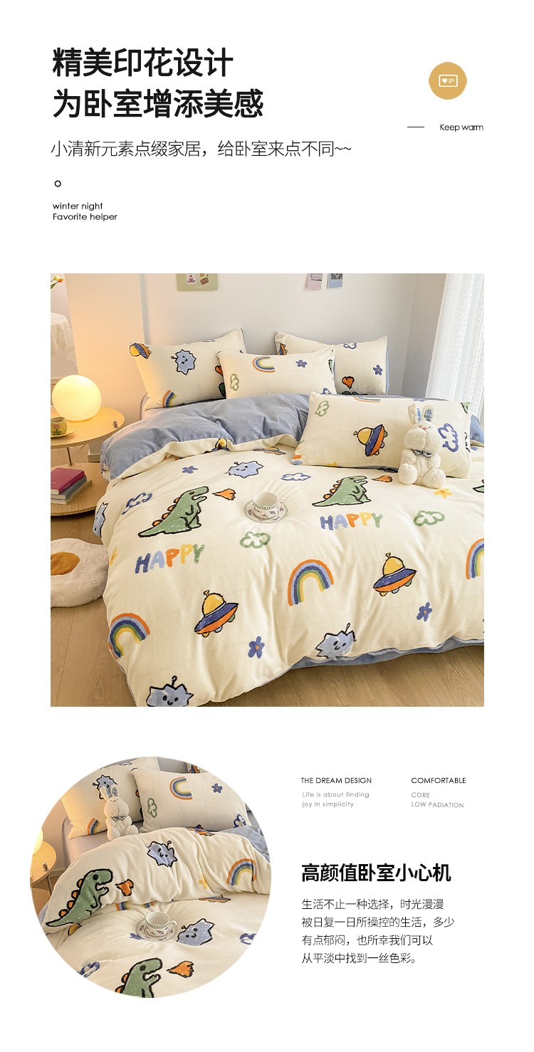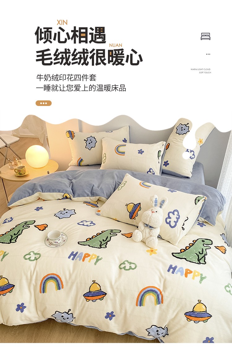 商品名称:雅居纺 2022新款印花牛奶绒四件套 开心龙