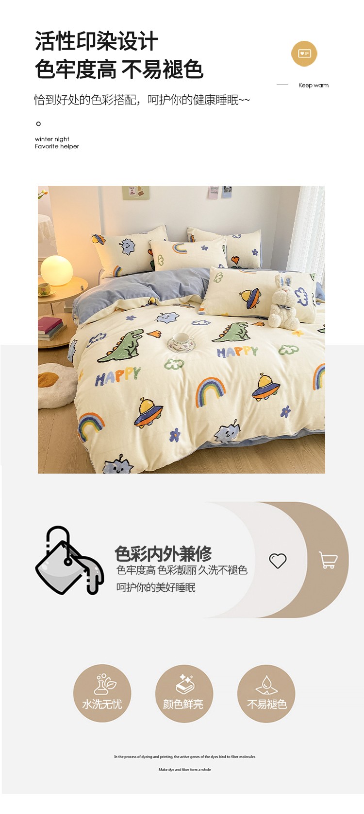 雅居纺 2022新款印花牛奶绒四件套 开心龙