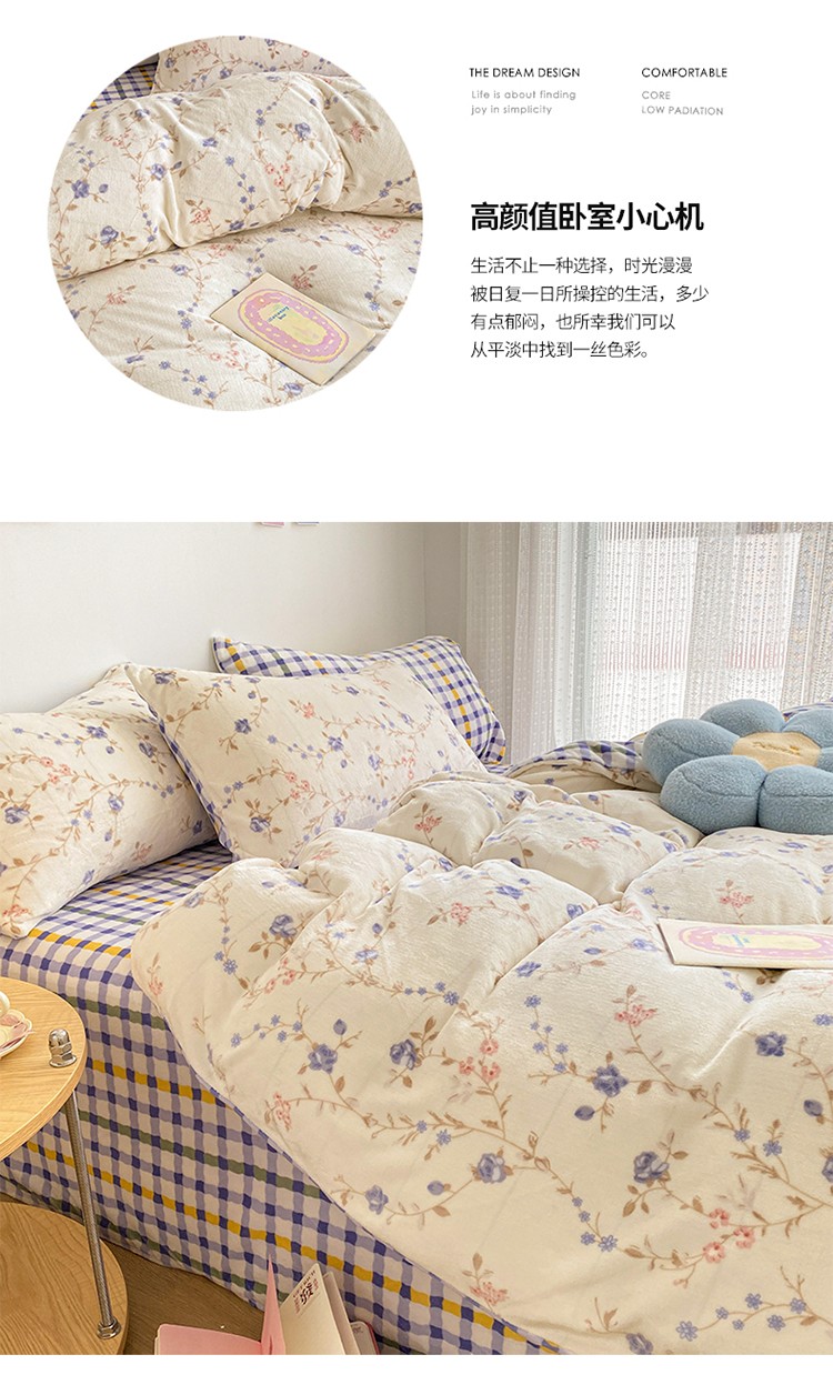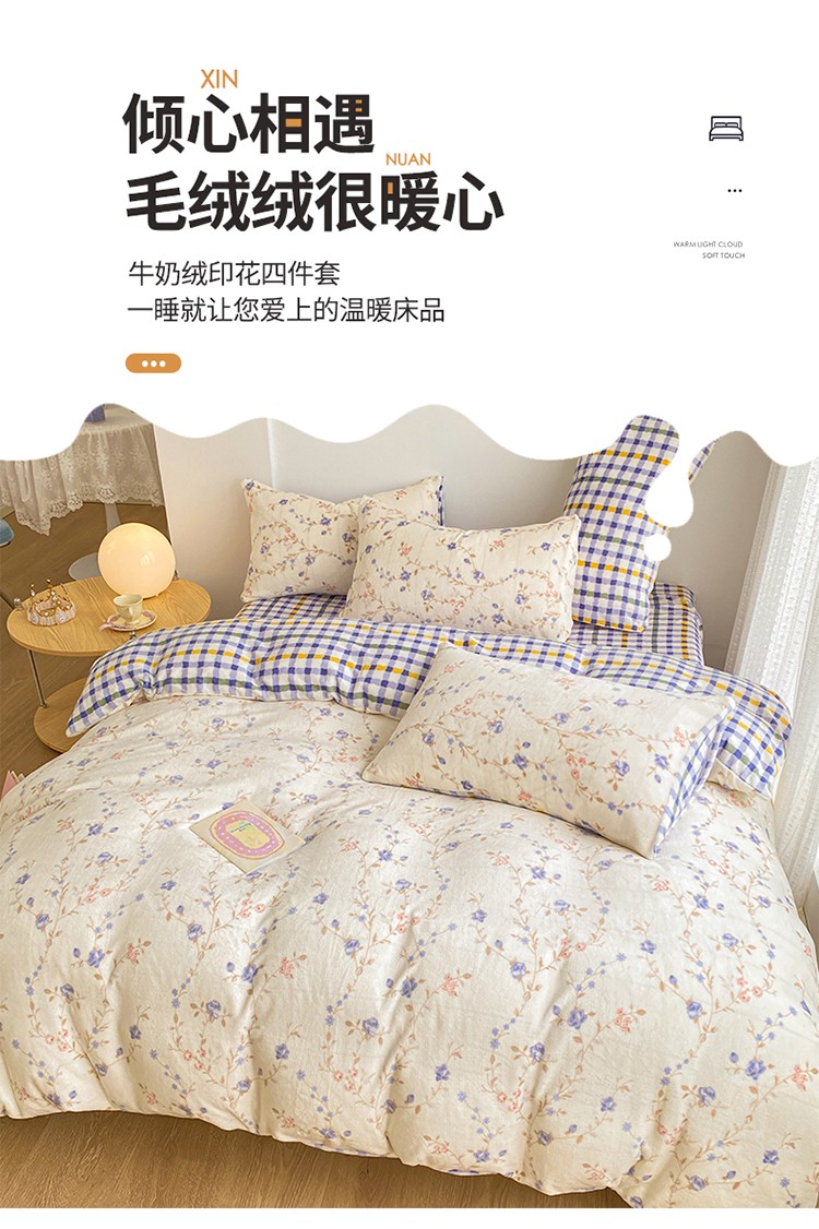 商品名称:雅居纺 2022新款印花牛奶绒四件套 紫色妖姬