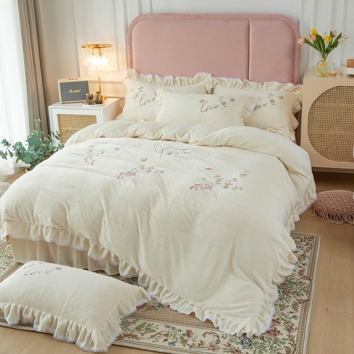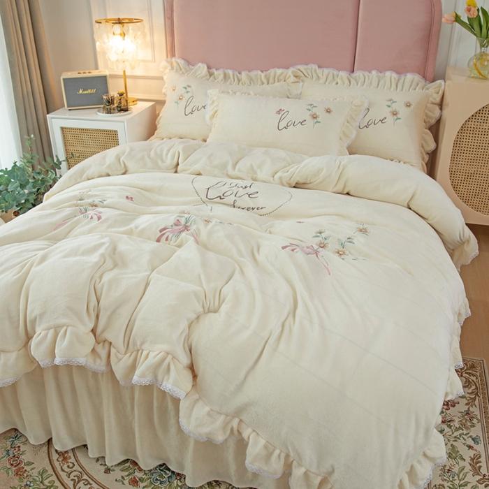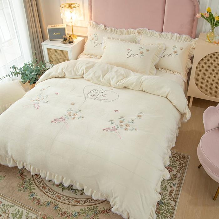 (总)亲亲公主 2025新款加厚高克重牛奶绒法式公主风四件套-热恋玫瑰,粉玉,奶白