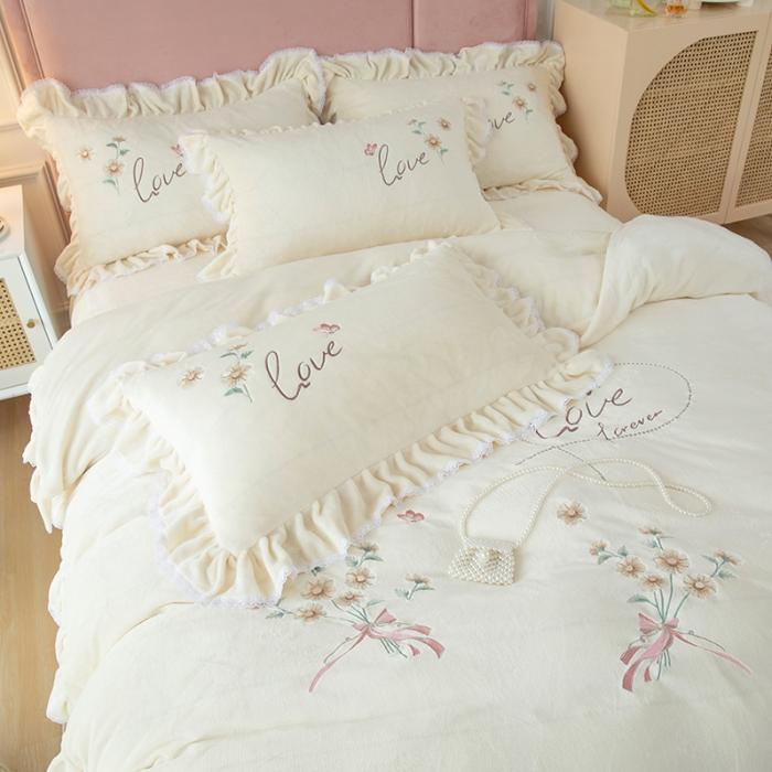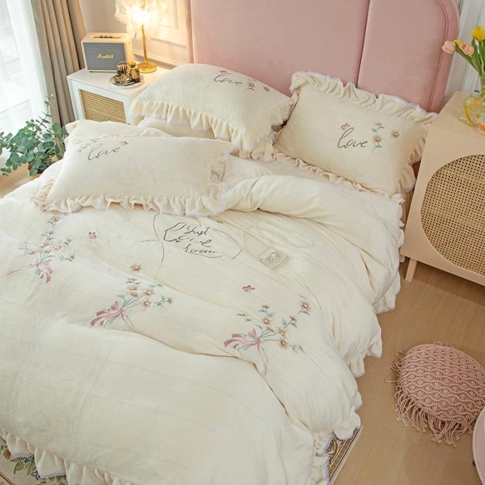 (总)亲亲公主 2025新款高端牛奶绒刺绣四件套
