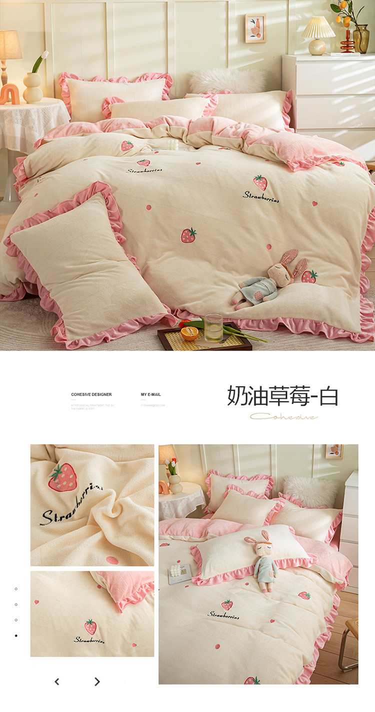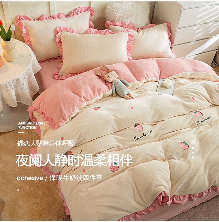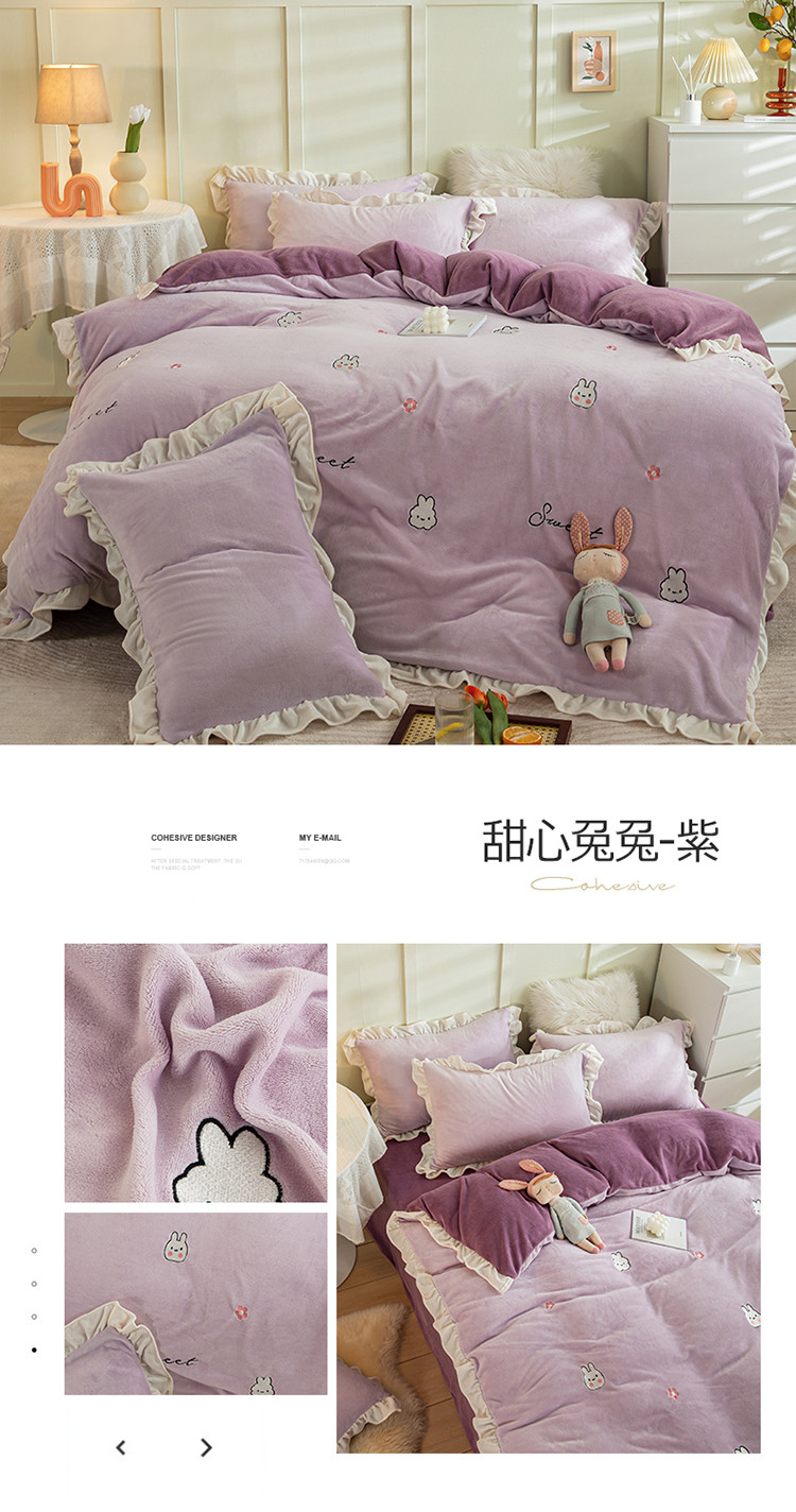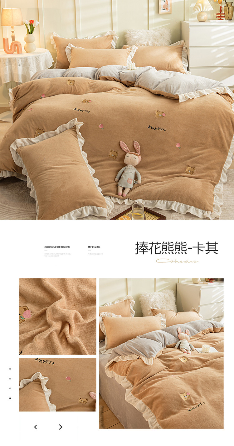 (总)沐辰 2021新款超厚韩版刺绣牛奶绒四件套