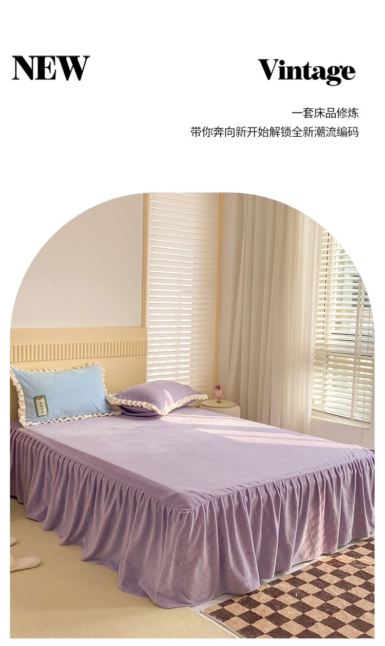 安哆啦 2021新款糖果色单品床裙 糖果色-风信紫