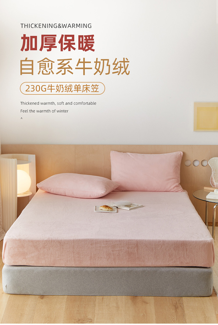 (总)时光里 2021新款230克牛奶绒纯色单床笠
