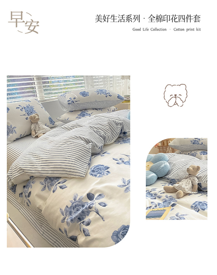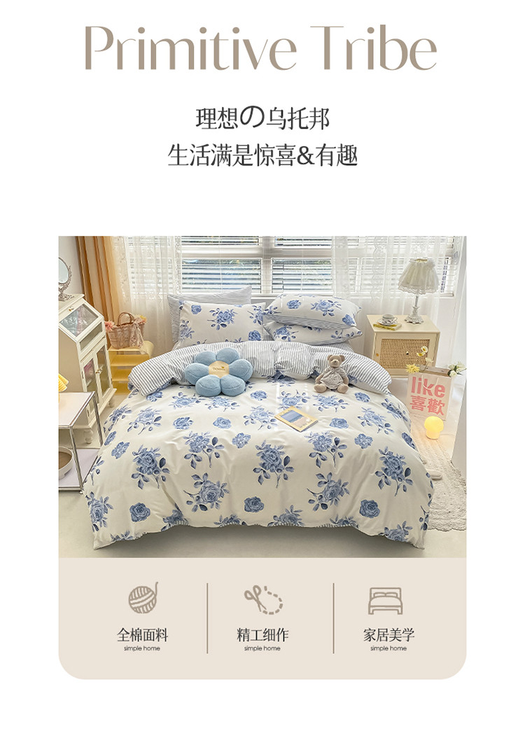 商品名称:卡巴伦家纺 2023新款春夏全棉文艺复古风四件套 玫瑰物语