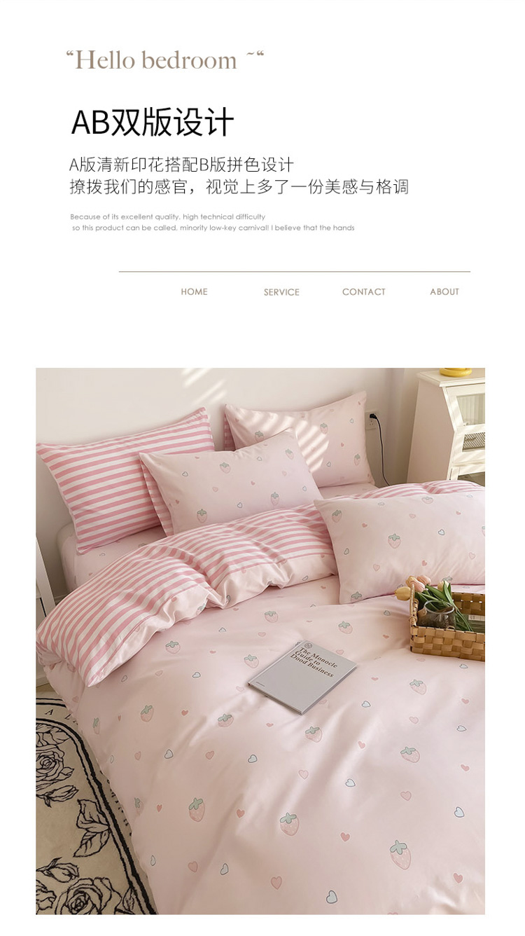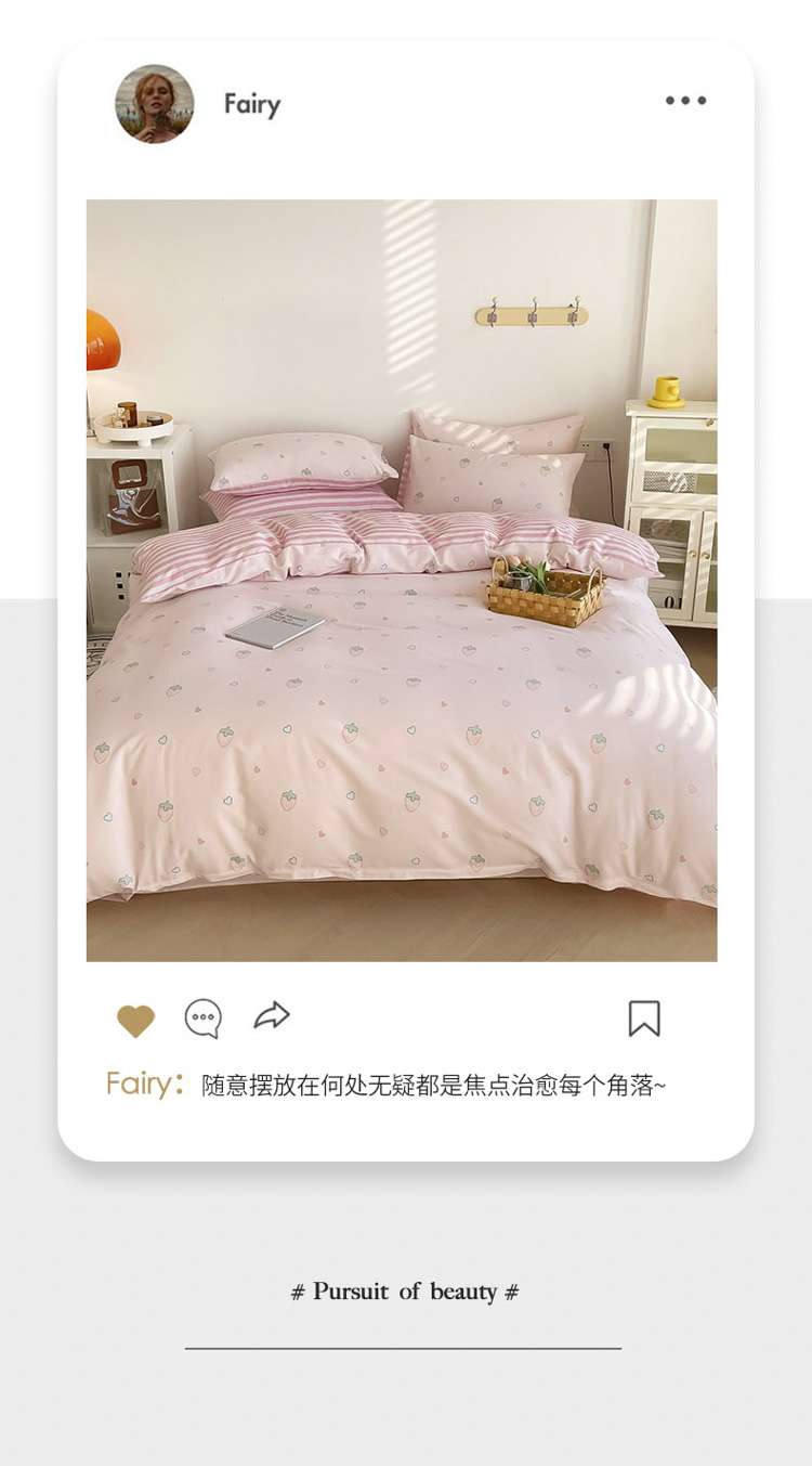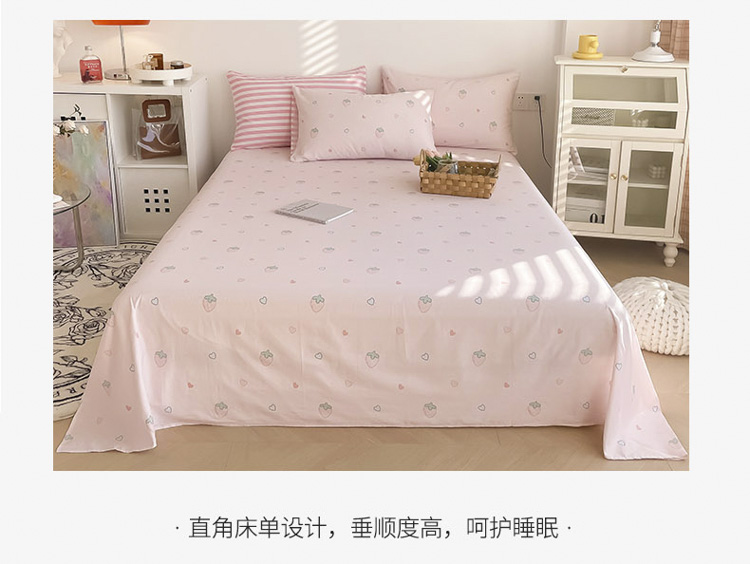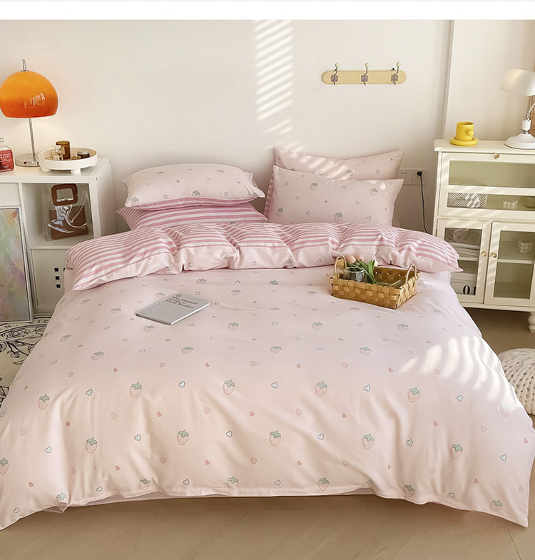 沐辰 2022新款全棉13372系列印花四件套 爱心草莓