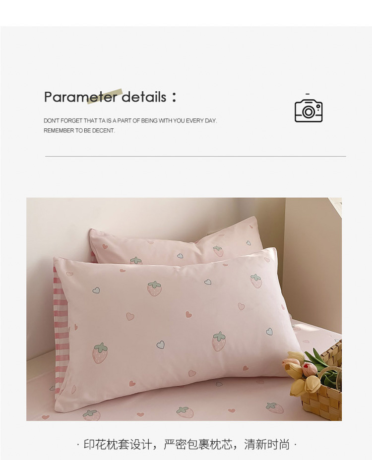 商品名称:沐辰 2022新款全棉13372系列印花四件套 爱心草莓