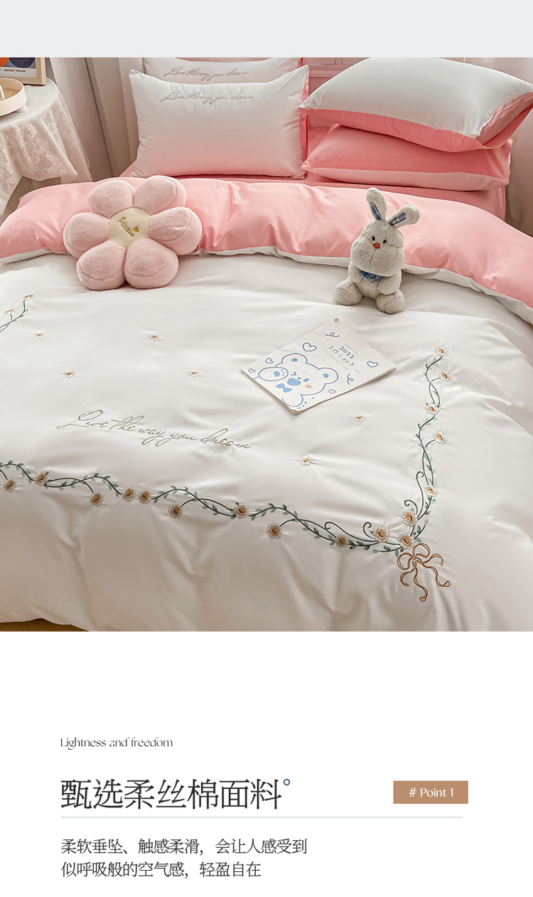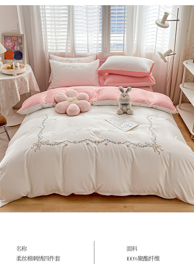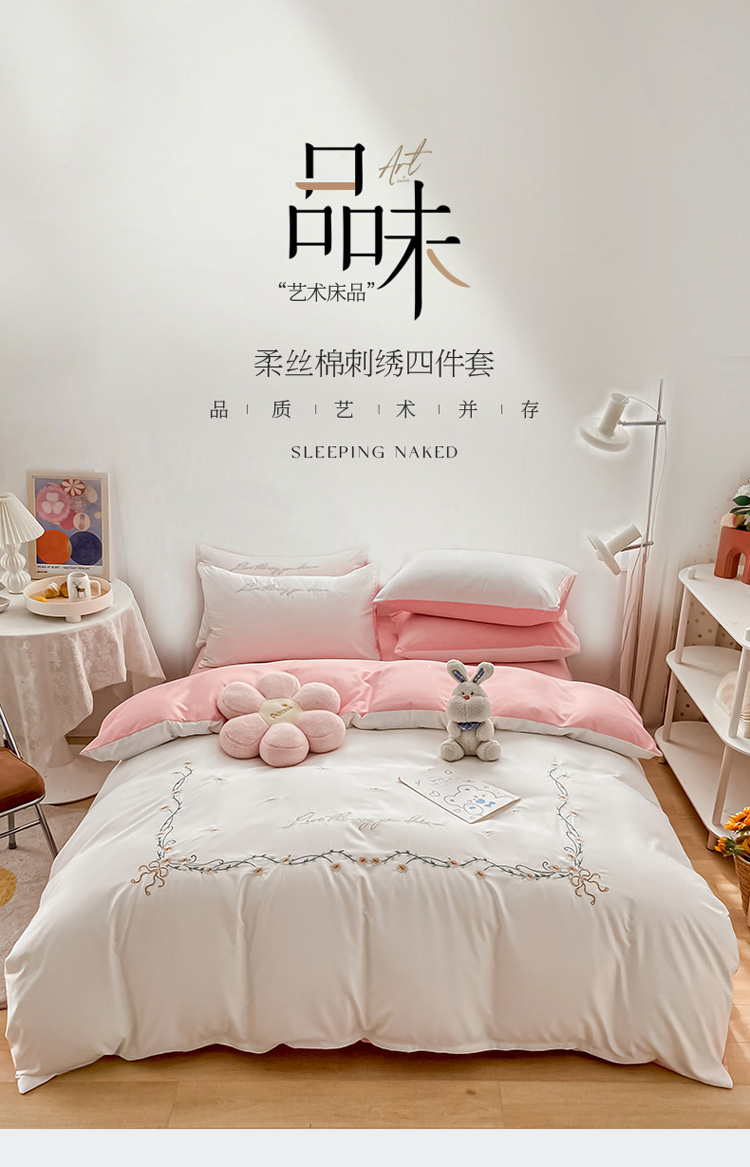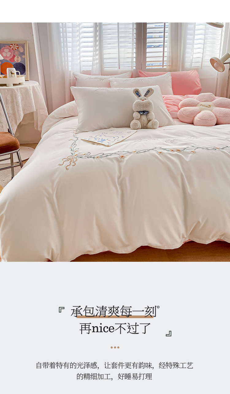 当前位置: 91家纺网 > 商品网购 > 床品套件 > 四件套 > 磨绒四件套 > 眠帛 2022新款柔丝棉绣花四件套 繁花奶白